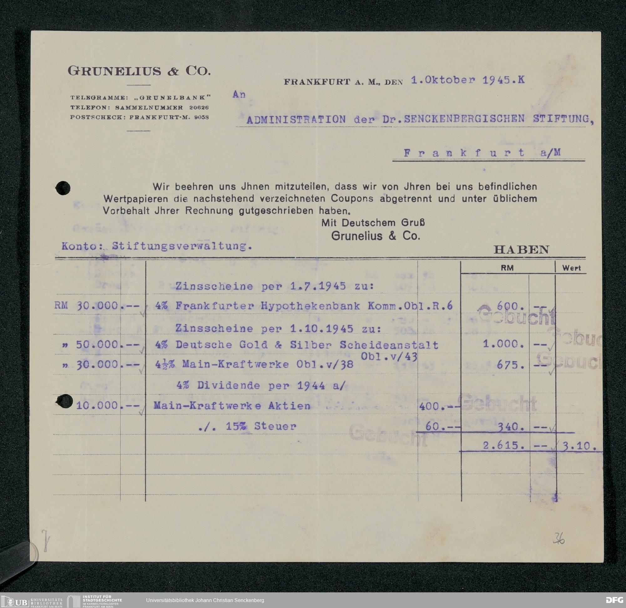 V48 Dr. Senckenbergische Stiftung, 667 - Bankhaus Grunelius & Co.
