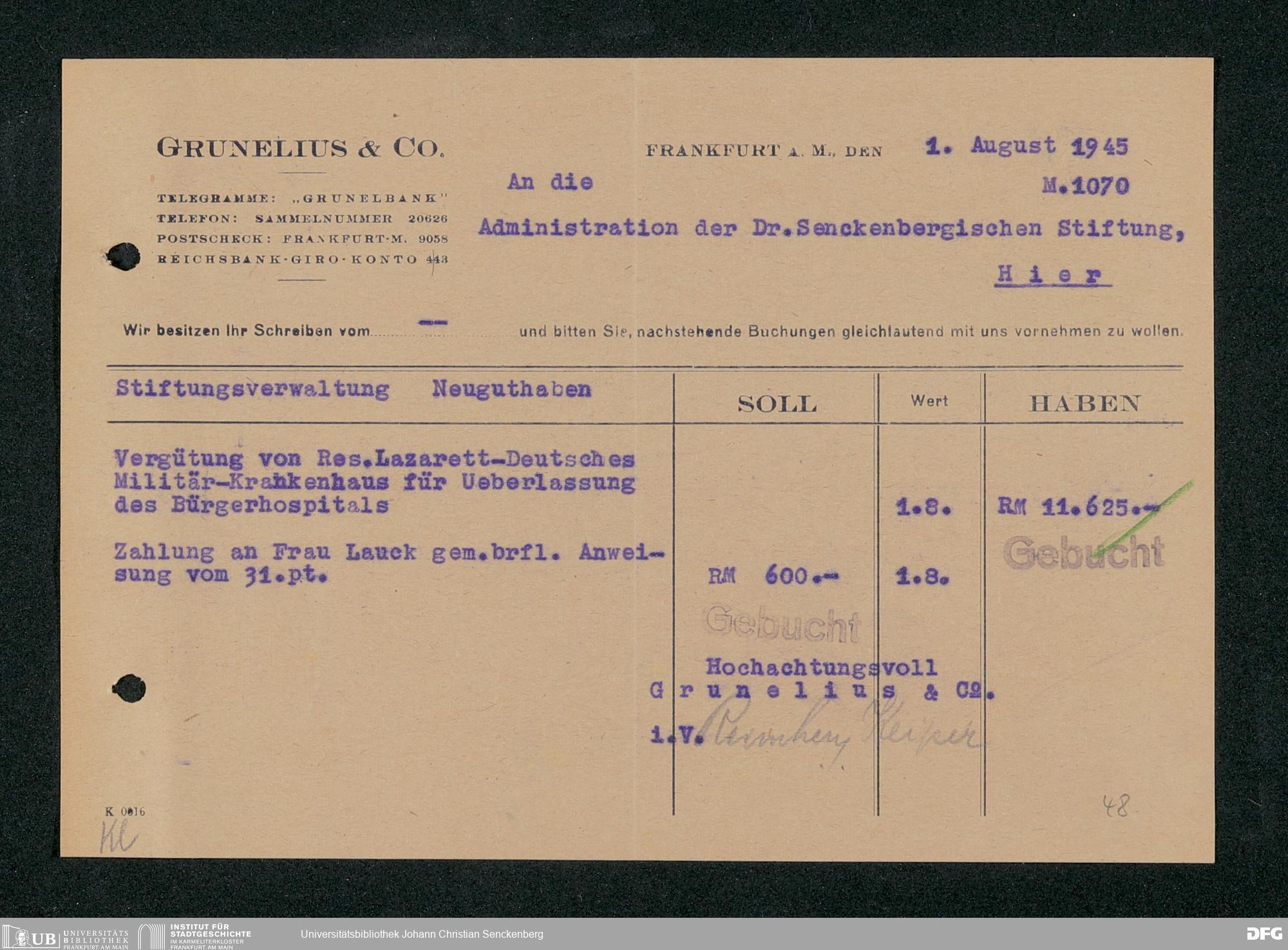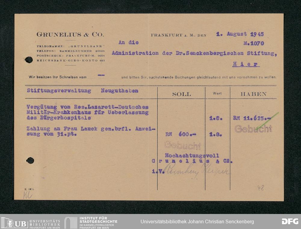 V48 Dr. Senckenbergische Stiftung, 667 - Bankhaus Grunelius & Co.