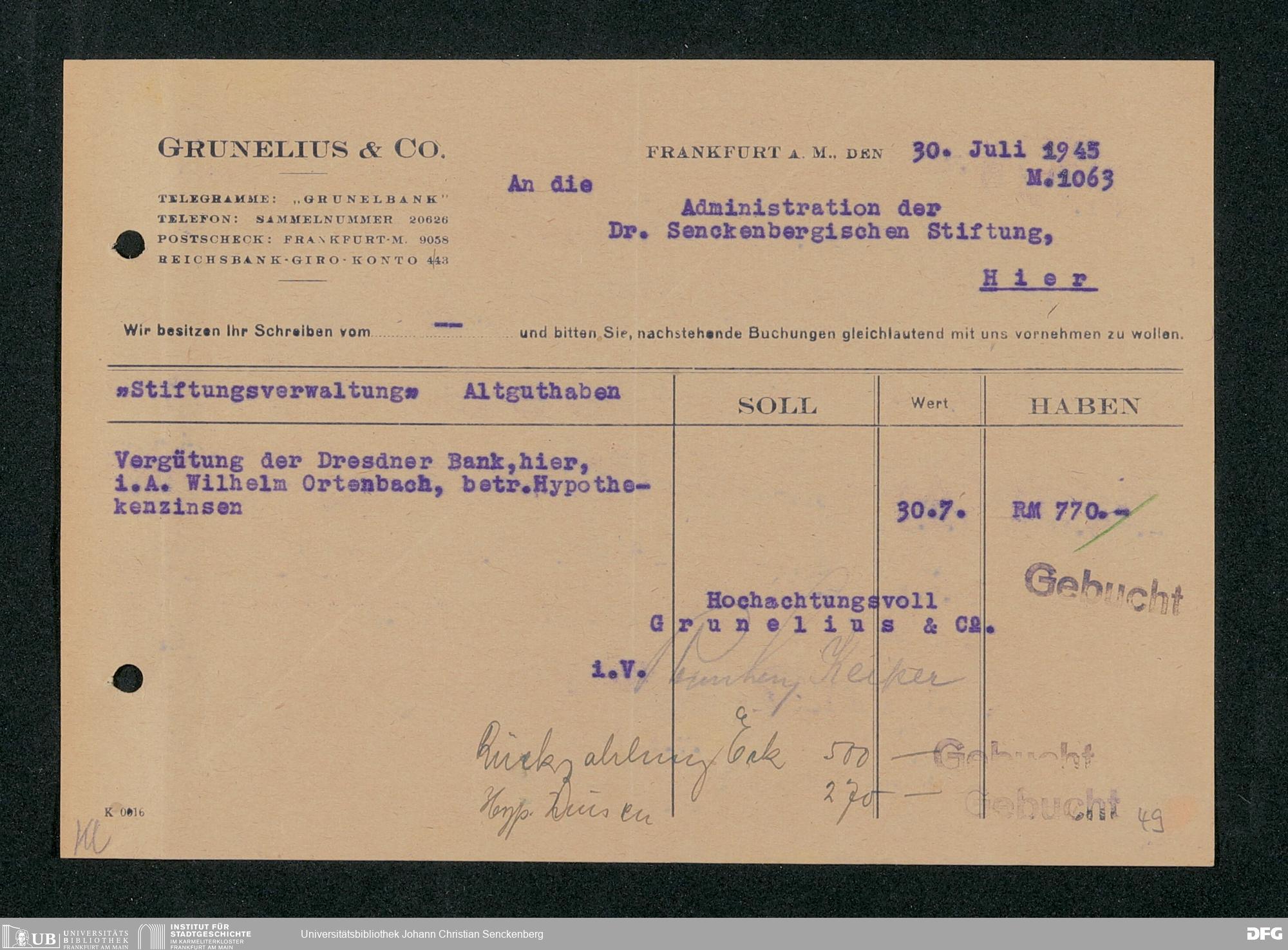 V48 Dr. Senckenbergische Stiftung, 667 - Bankhaus Grunelius & Co.