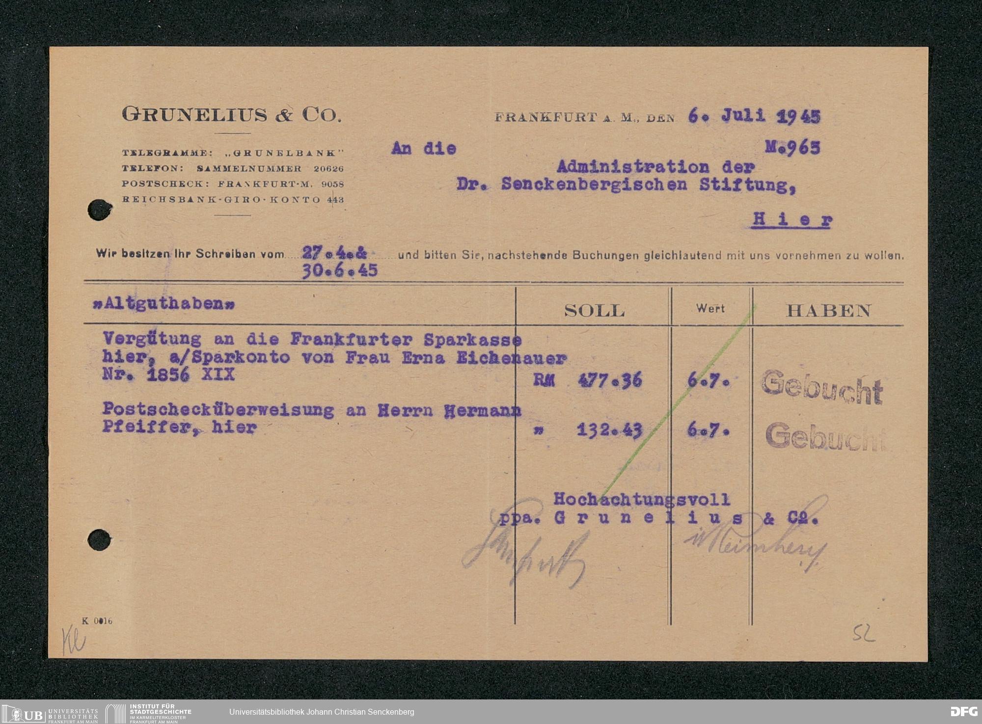 V48 Dr. Senckenbergische Stiftung, 667 - Bankhaus Grunelius & Co.