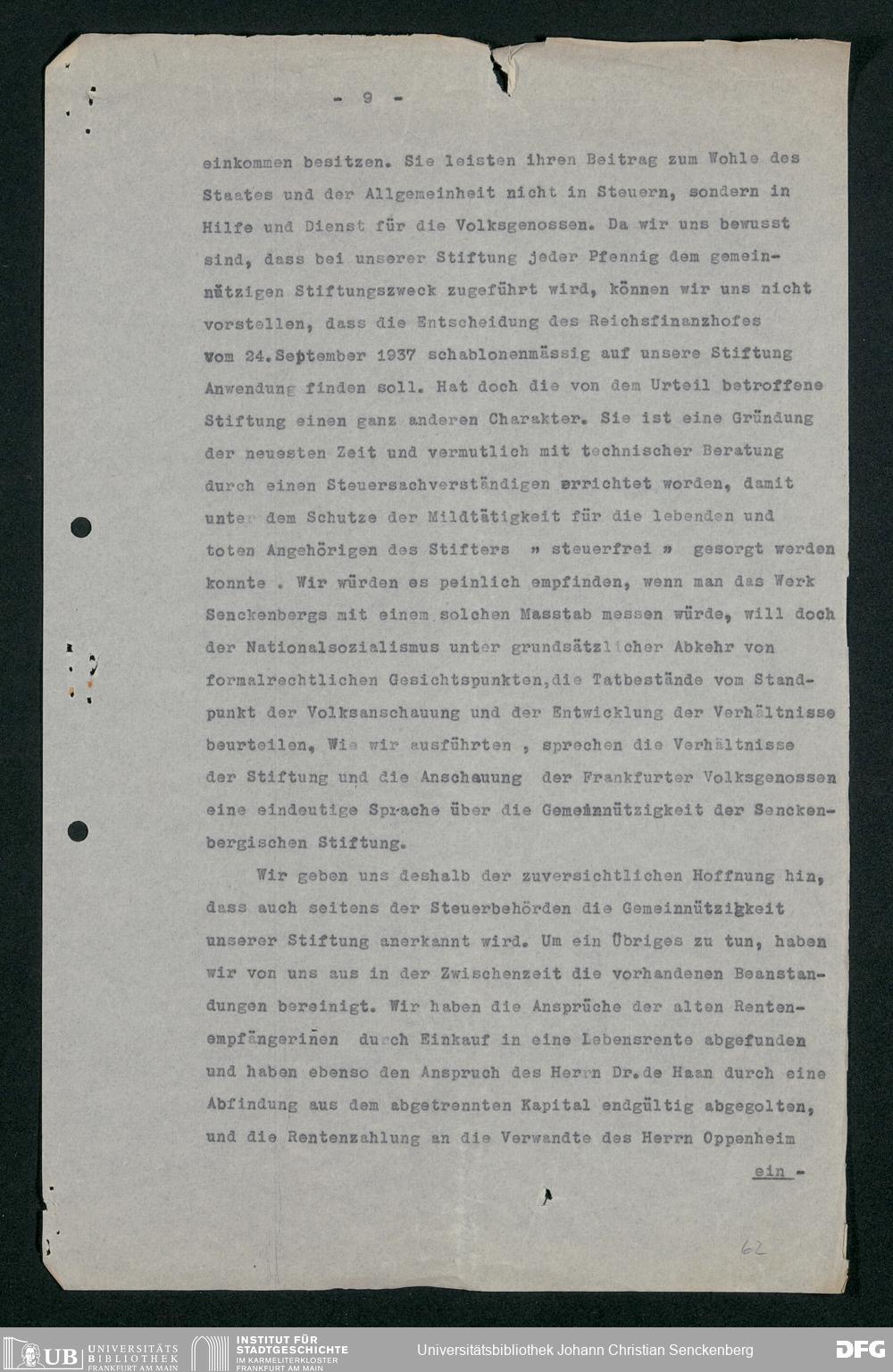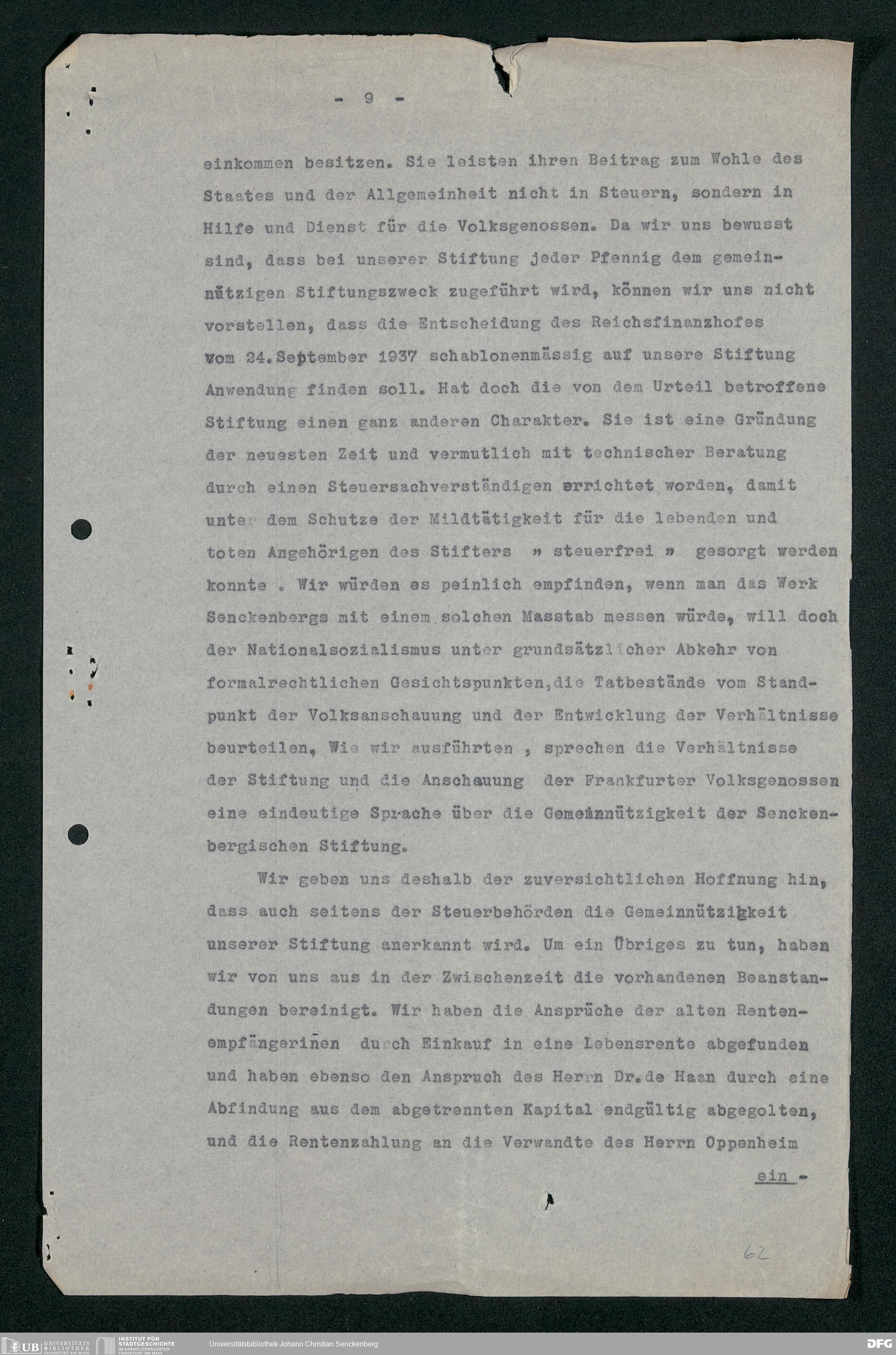V48 Dr. Senckenbergische Stiftung, 693 - Gemeinnützigkeit der Stiftung
