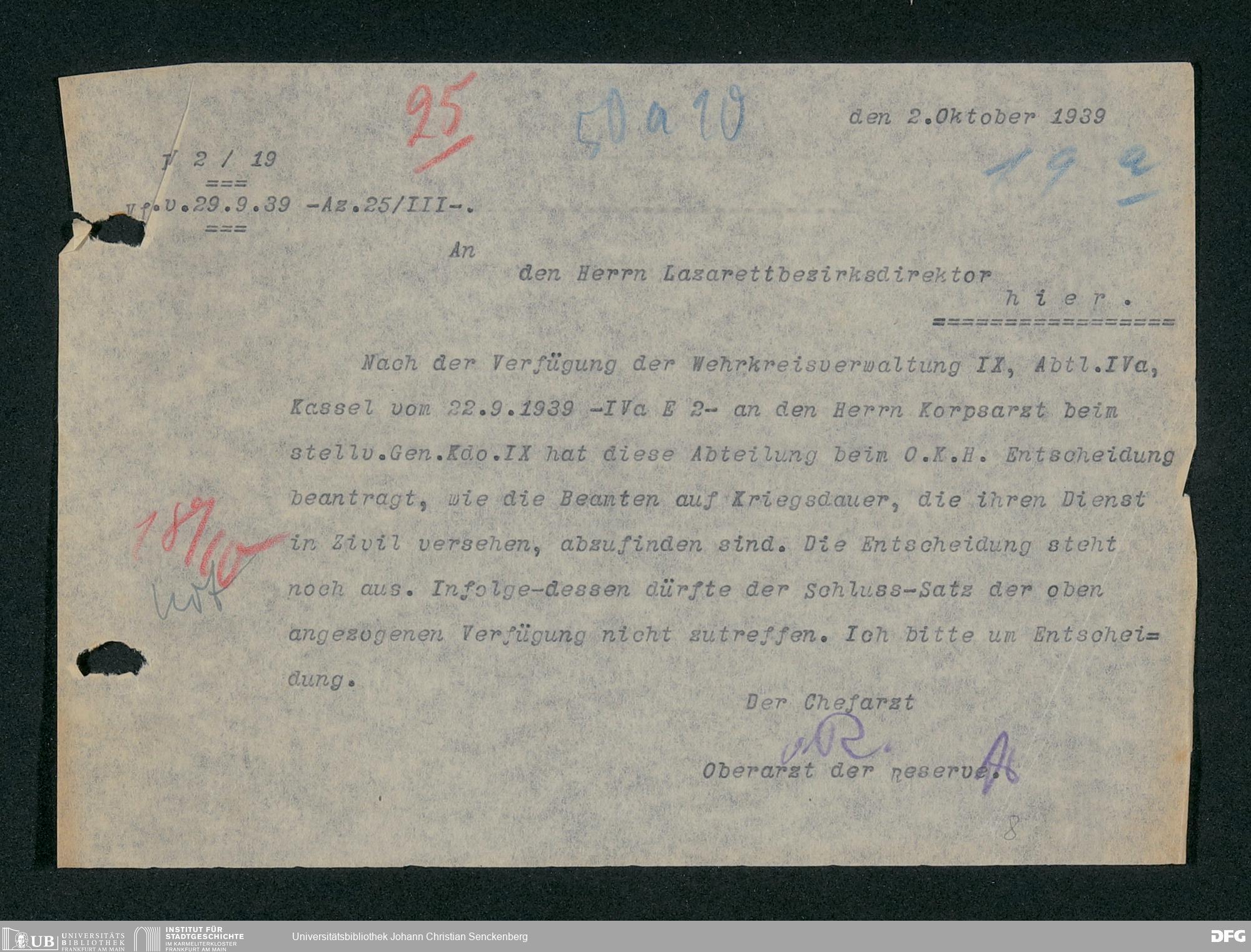 V48 Dr. Senckenbergische Stiftung, 703 - Reservelazarett I