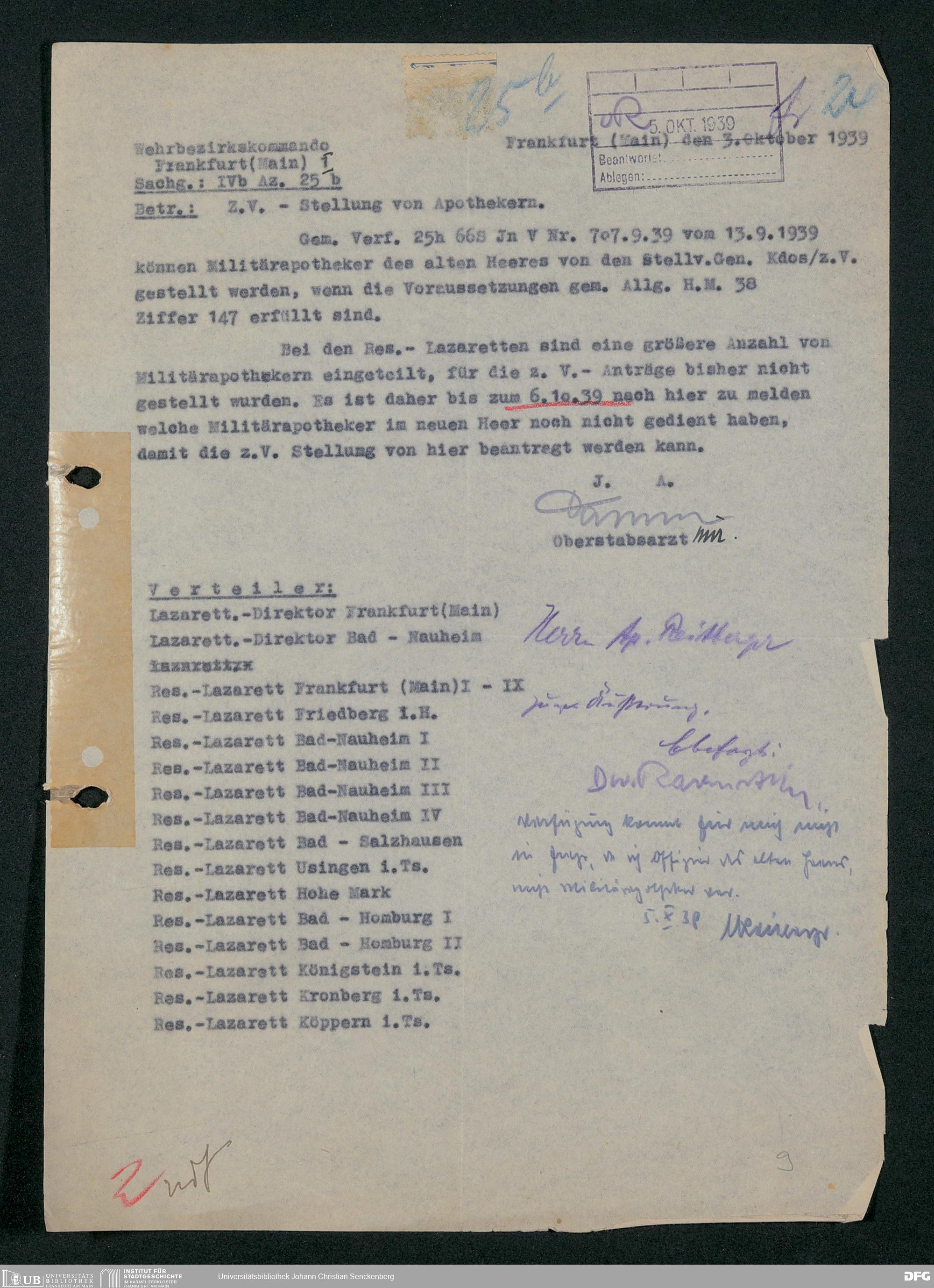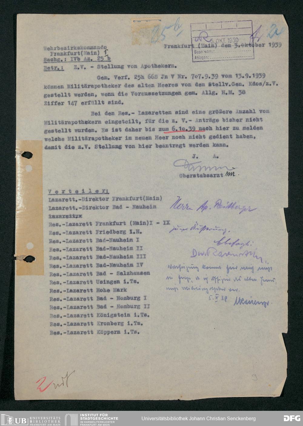 V48 Dr. Senckenbergische Stiftung, 703 - Reservelazarett I