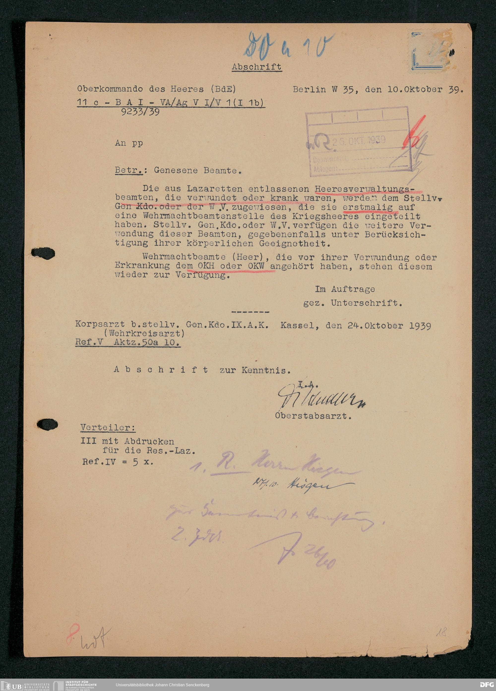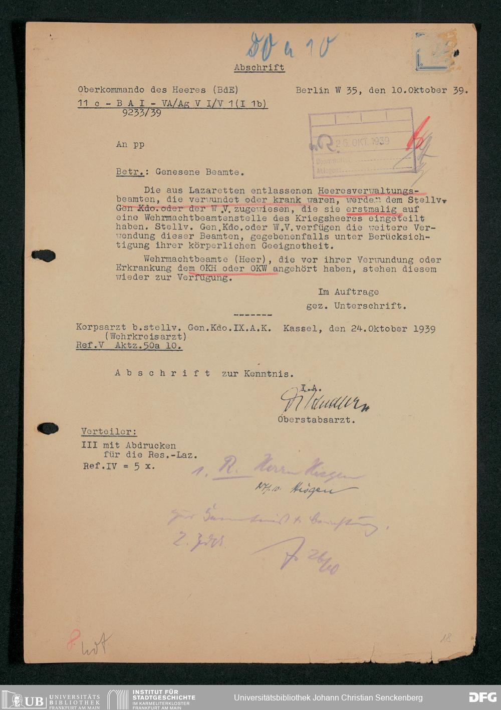 V48 Dr. Senckenbergische Stiftung, 703 - Reservelazarett I