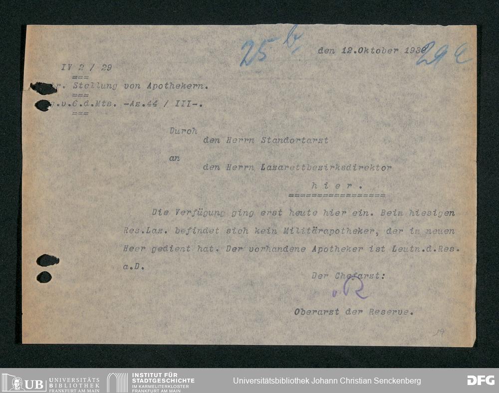 V48 Dr. Senckenbergische Stiftung, 703 - Reservelazarett I