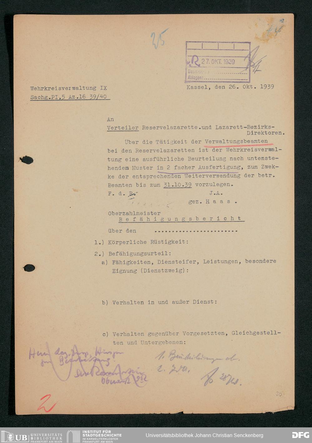 V48 Dr. Senckenbergische Stiftung, 703 - Reservelazarett I
