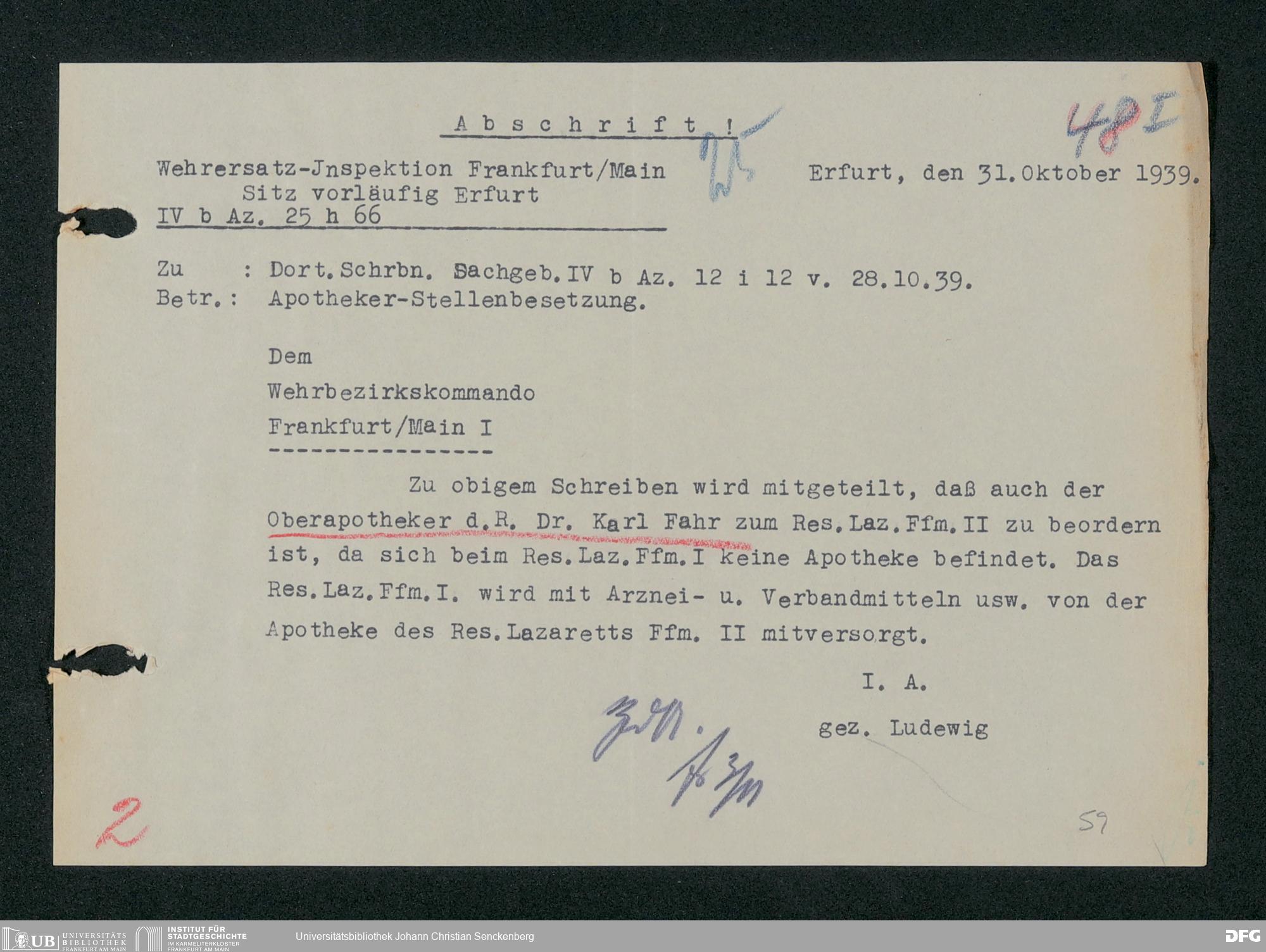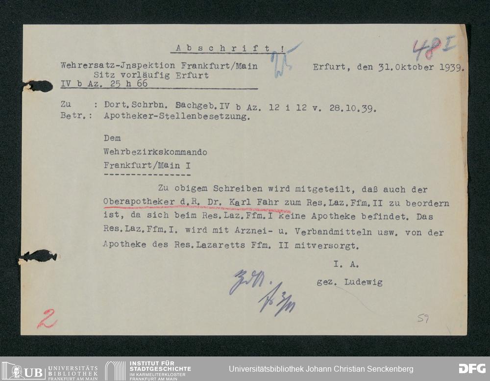 V48 Dr. Senckenbergische Stiftung, 703 - Reservelazarett I