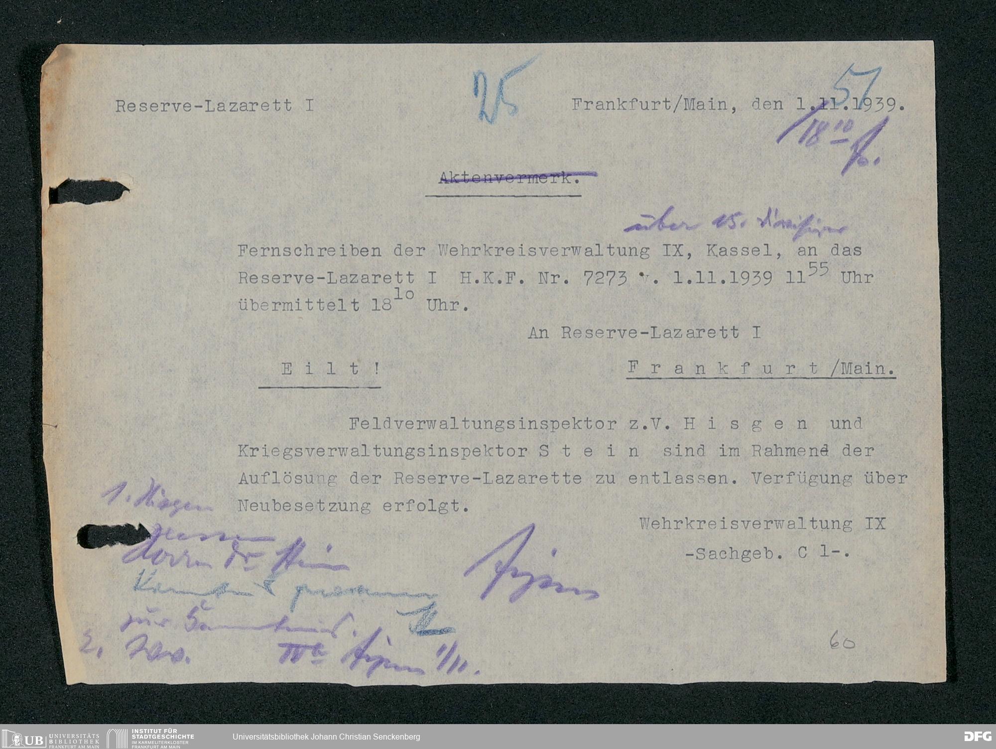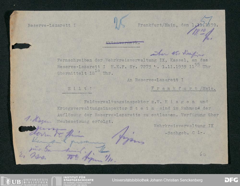 V48 Dr. Senckenbergische Stiftung, 703 - Reservelazarett I