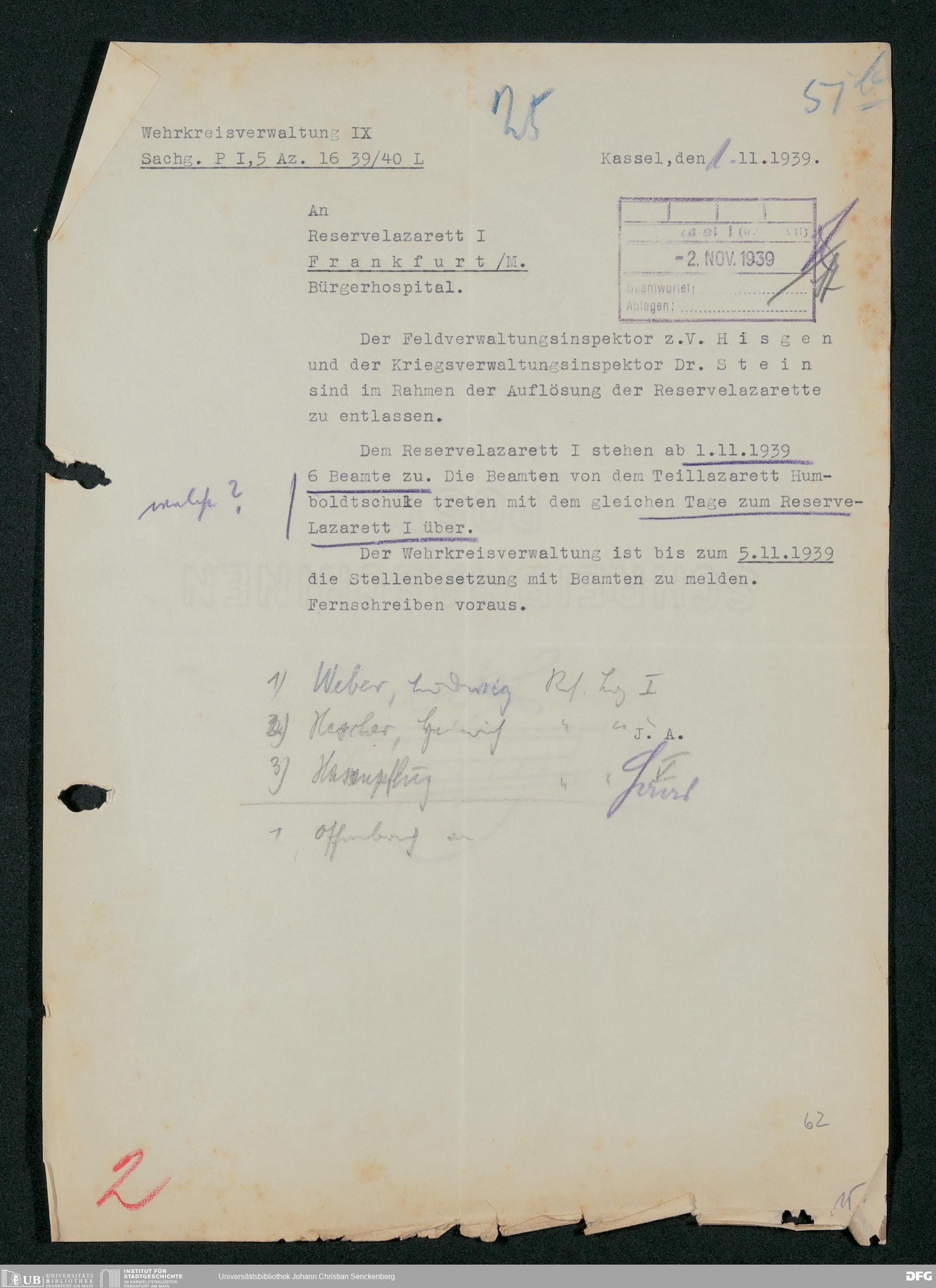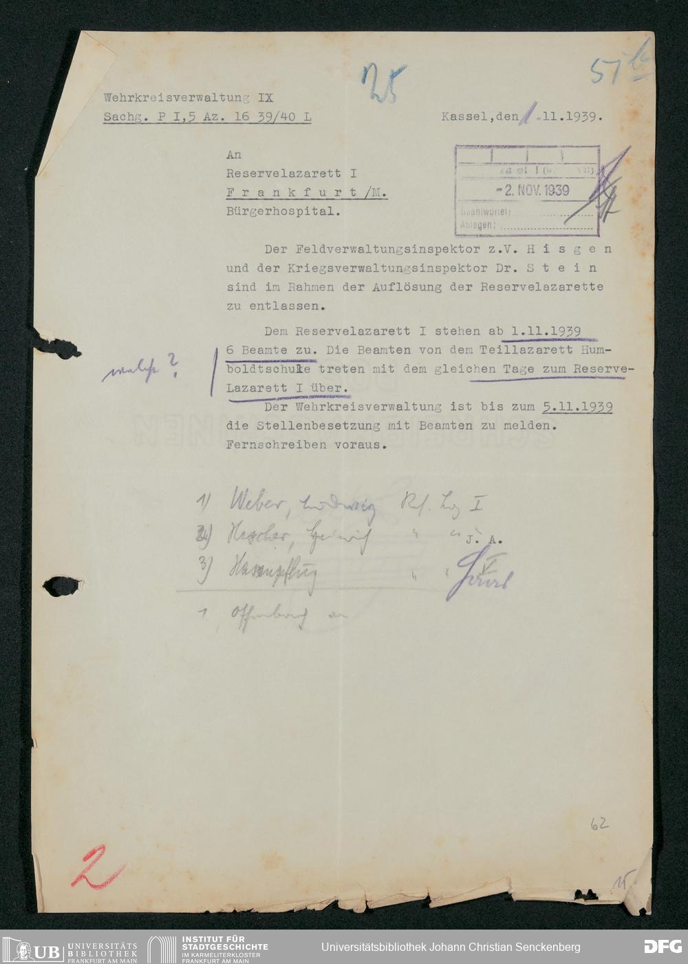 V48 Dr. Senckenbergische Stiftung, 703 - Reservelazarett I