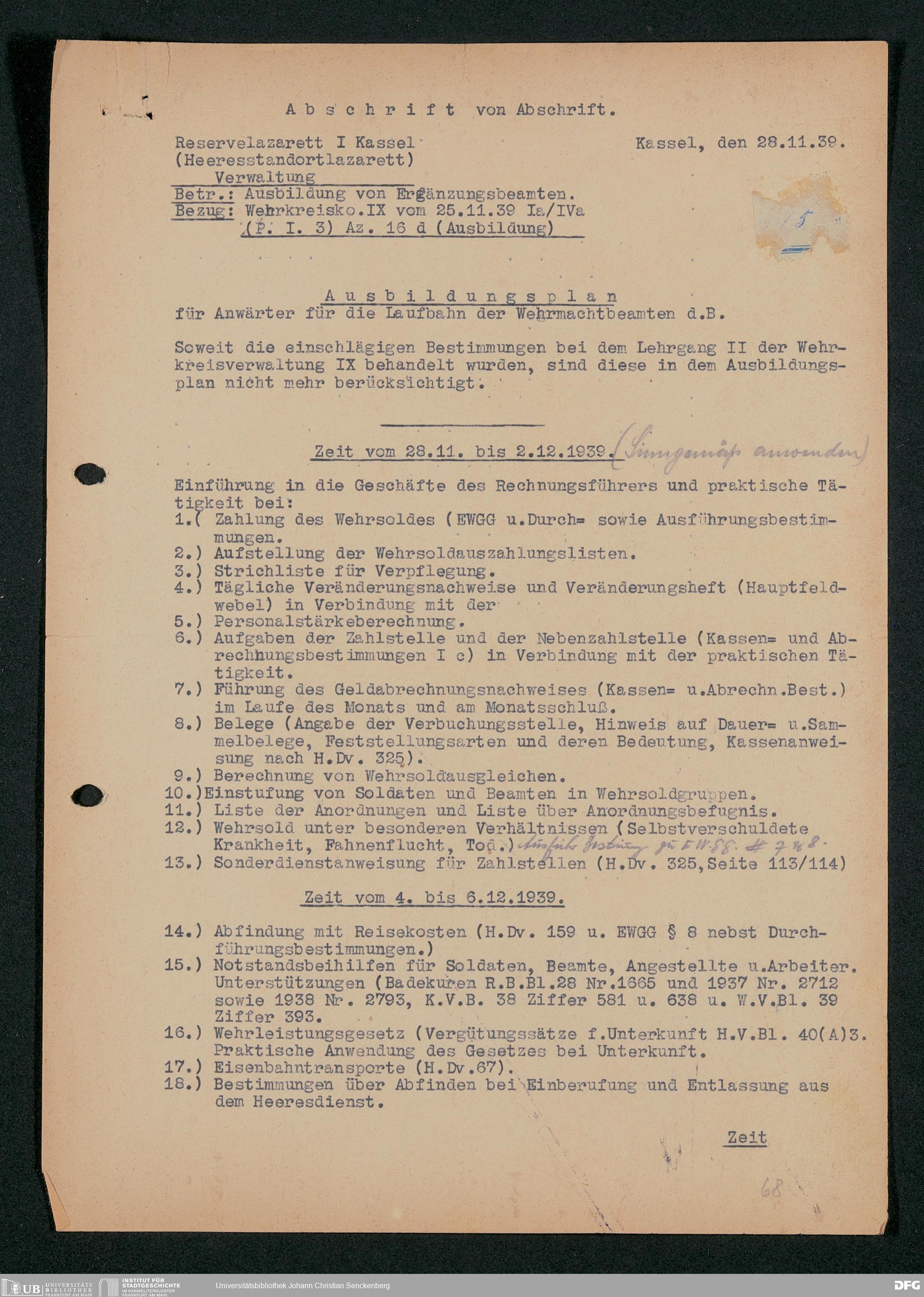 V48 Dr. Senckenbergische Stiftung, 703 - Reservelazarett I