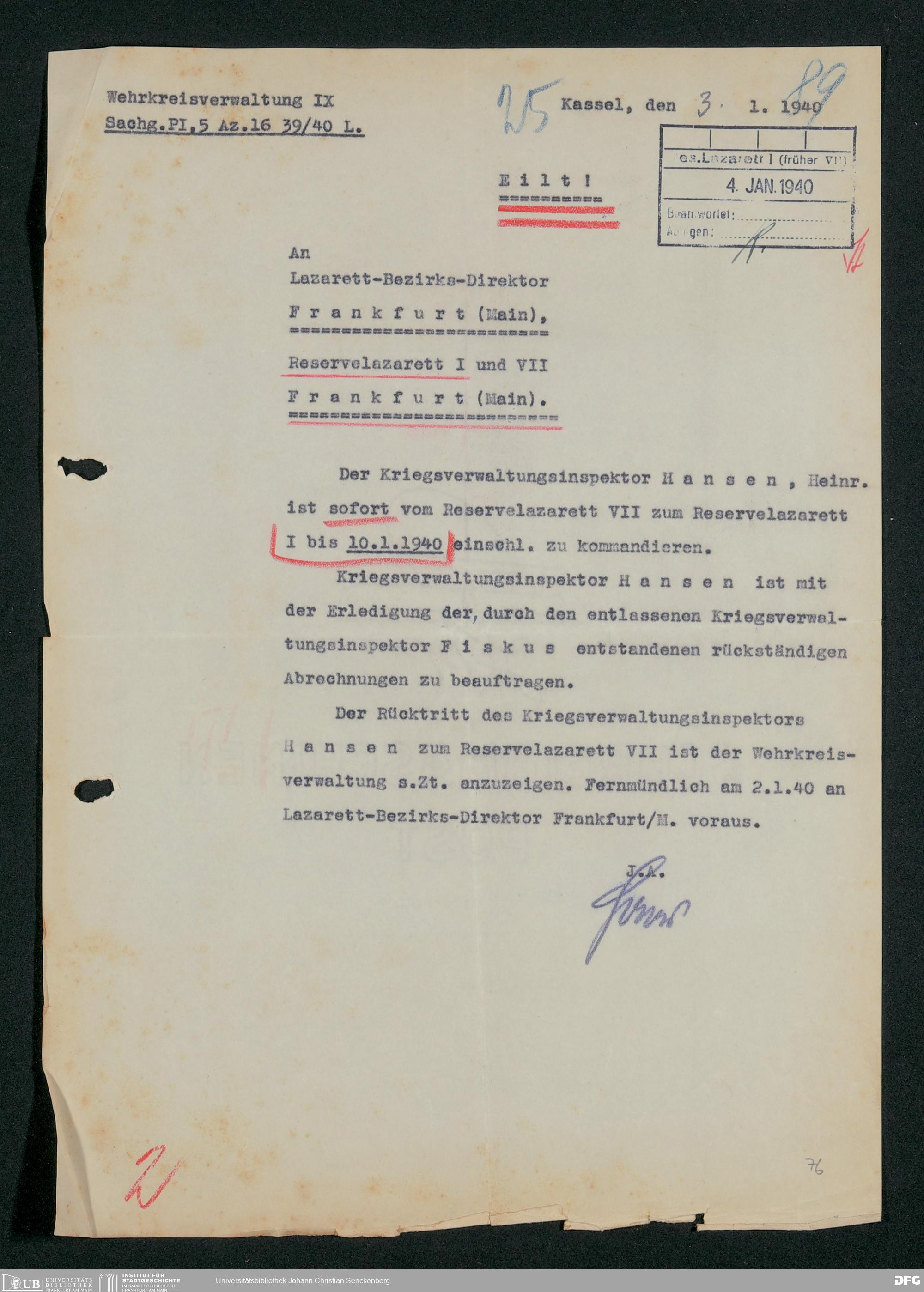 V48 Dr. Senckenbergische Stiftung, 703 - Reservelazarett I