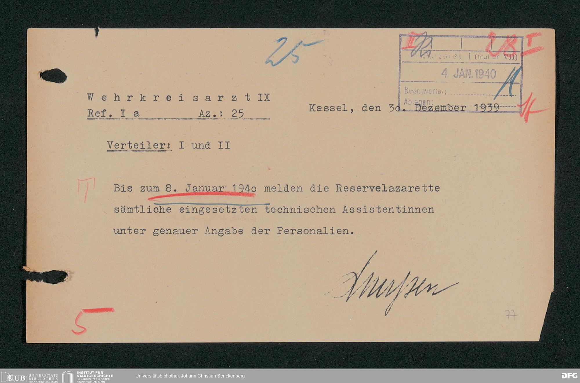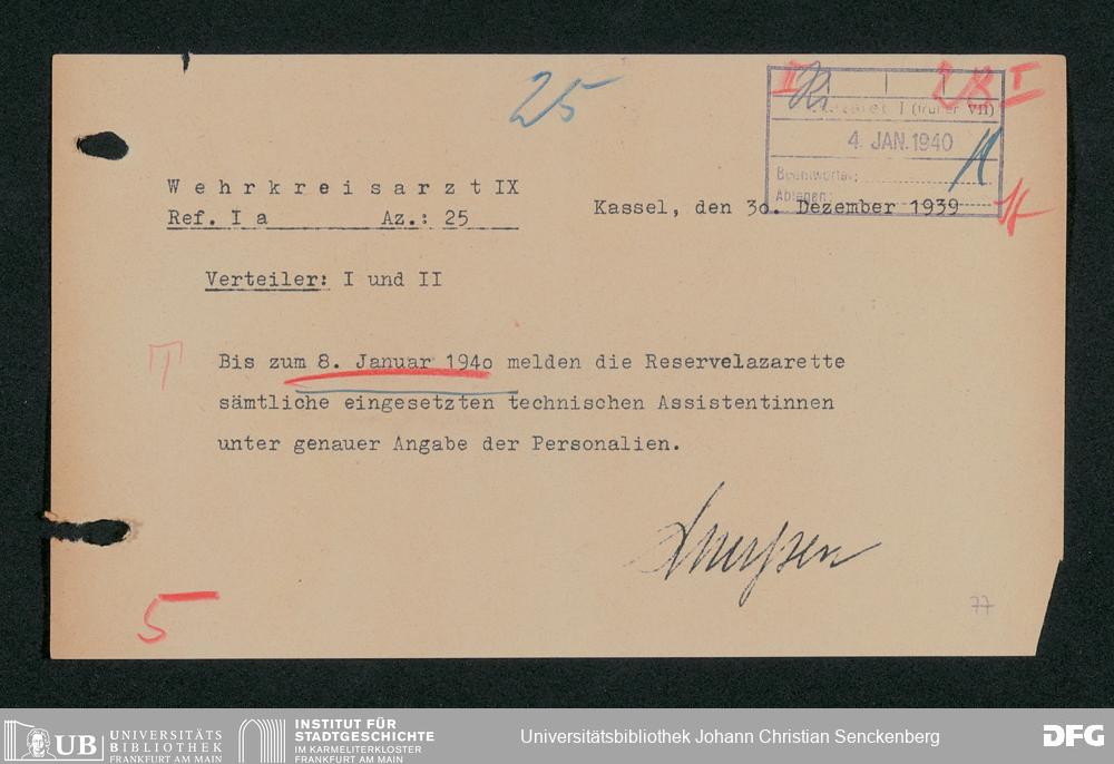 V48 Dr. Senckenbergische Stiftung, 703 - Reservelazarett I