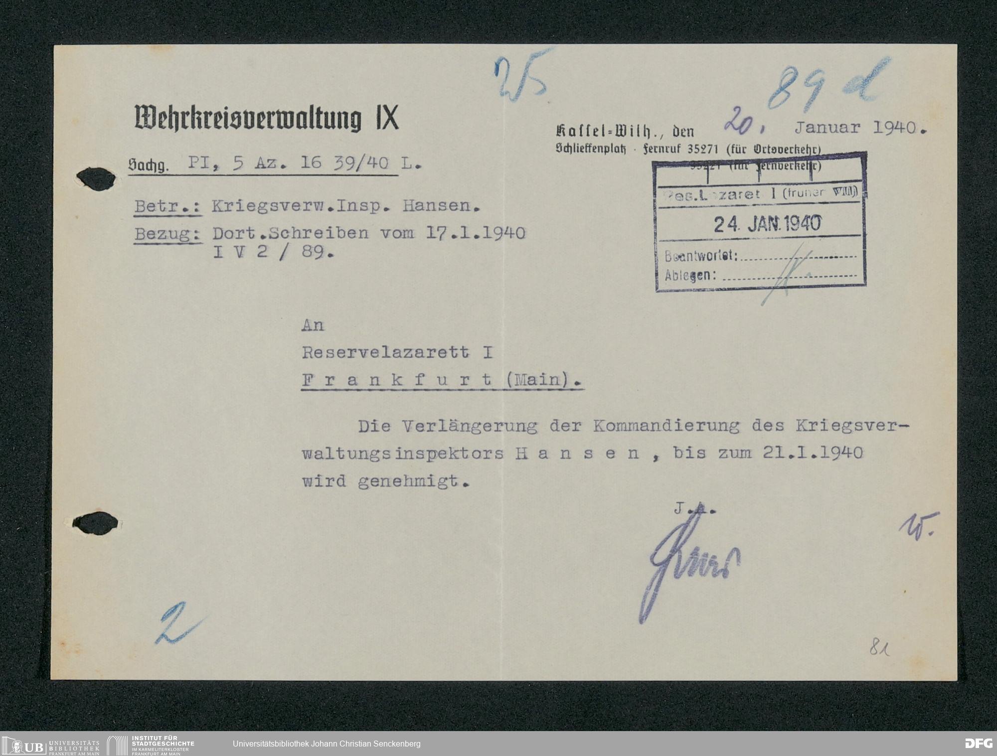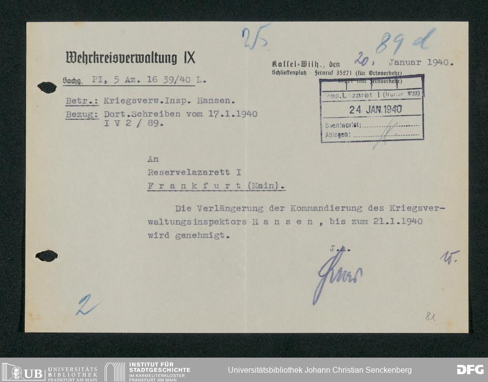 V48 Dr. Senckenbergische Stiftung, 703 - Reservelazarett I