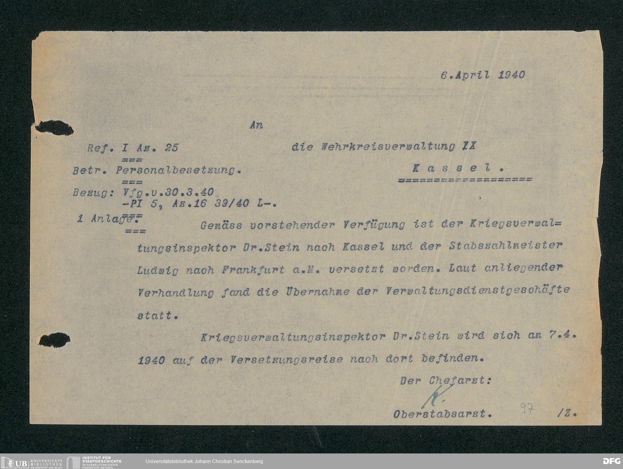V48 Dr. Senckenbergische Stiftung, 703 - Reservelazarett I