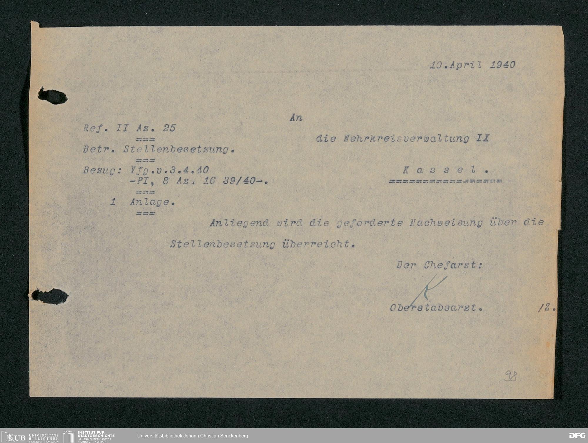 V48 Dr. Senckenbergische Stiftung, 703 - Reservelazarett I