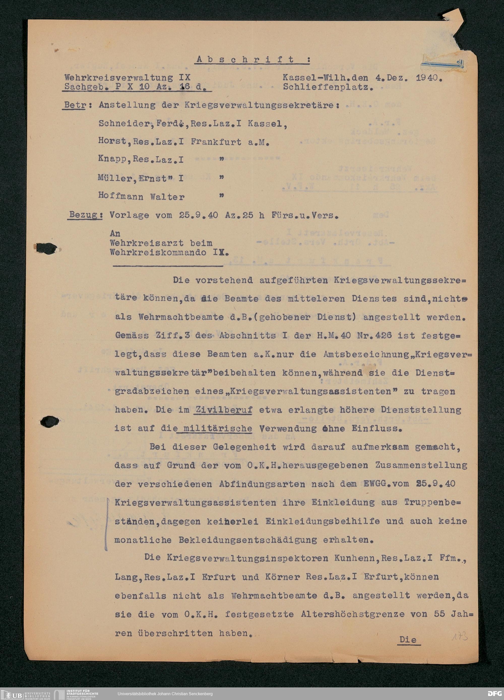 V48 Dr. Senckenbergische Stiftung, 703 - Reservelazarett I