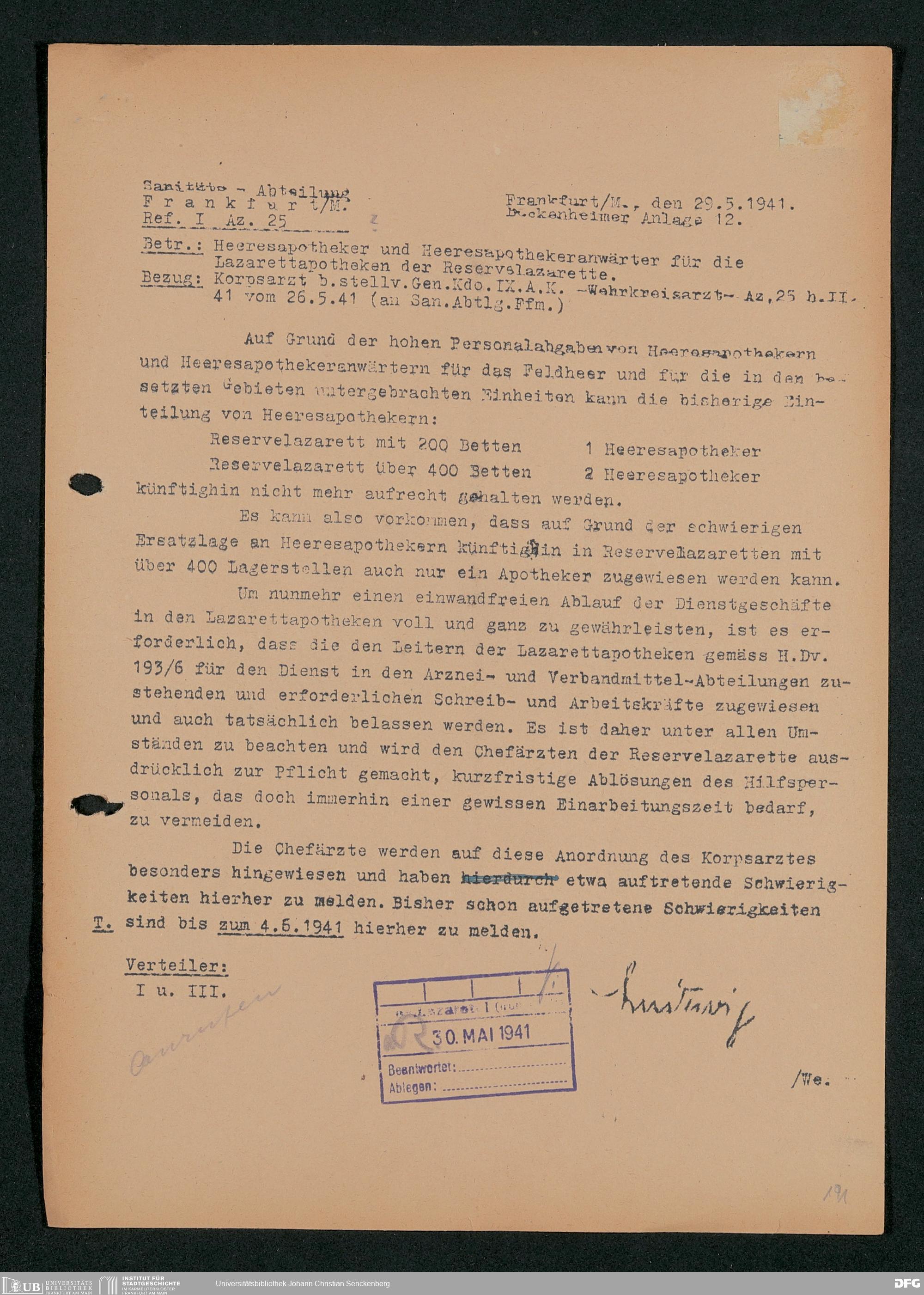V48 Dr. Senckenbergische Stiftung, 703 - Reservelazarett I