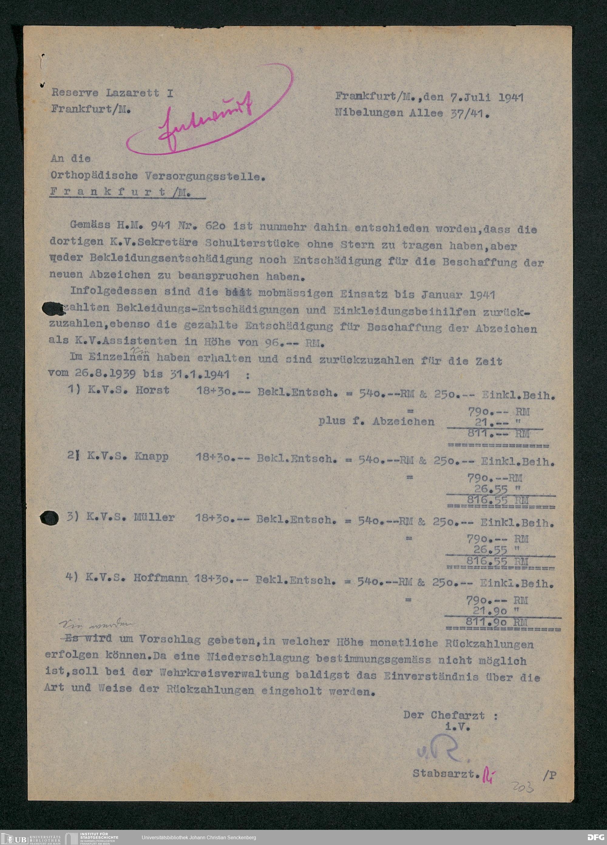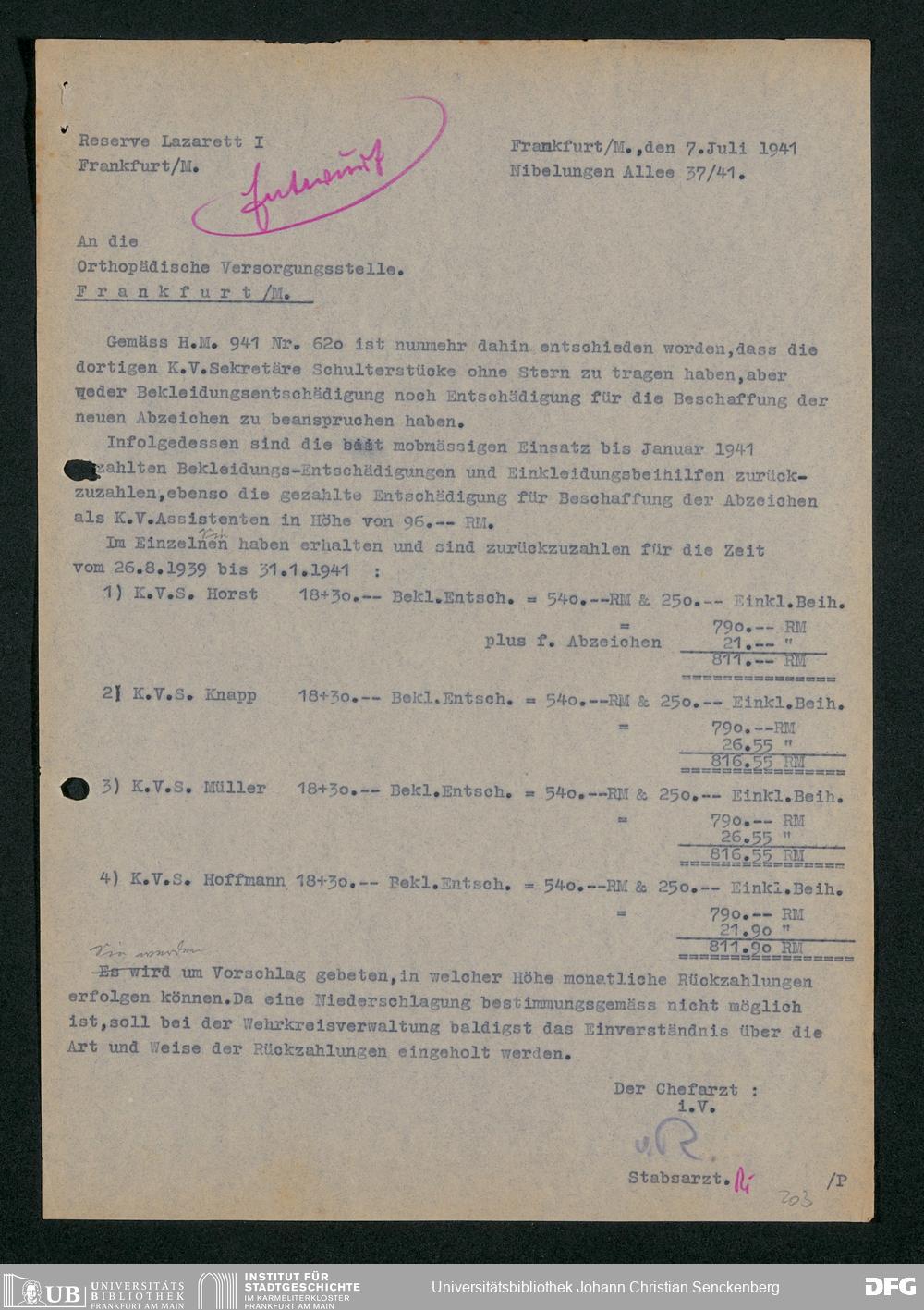 V48 Dr. Senckenbergische Stiftung, 703 - Reservelazarett I