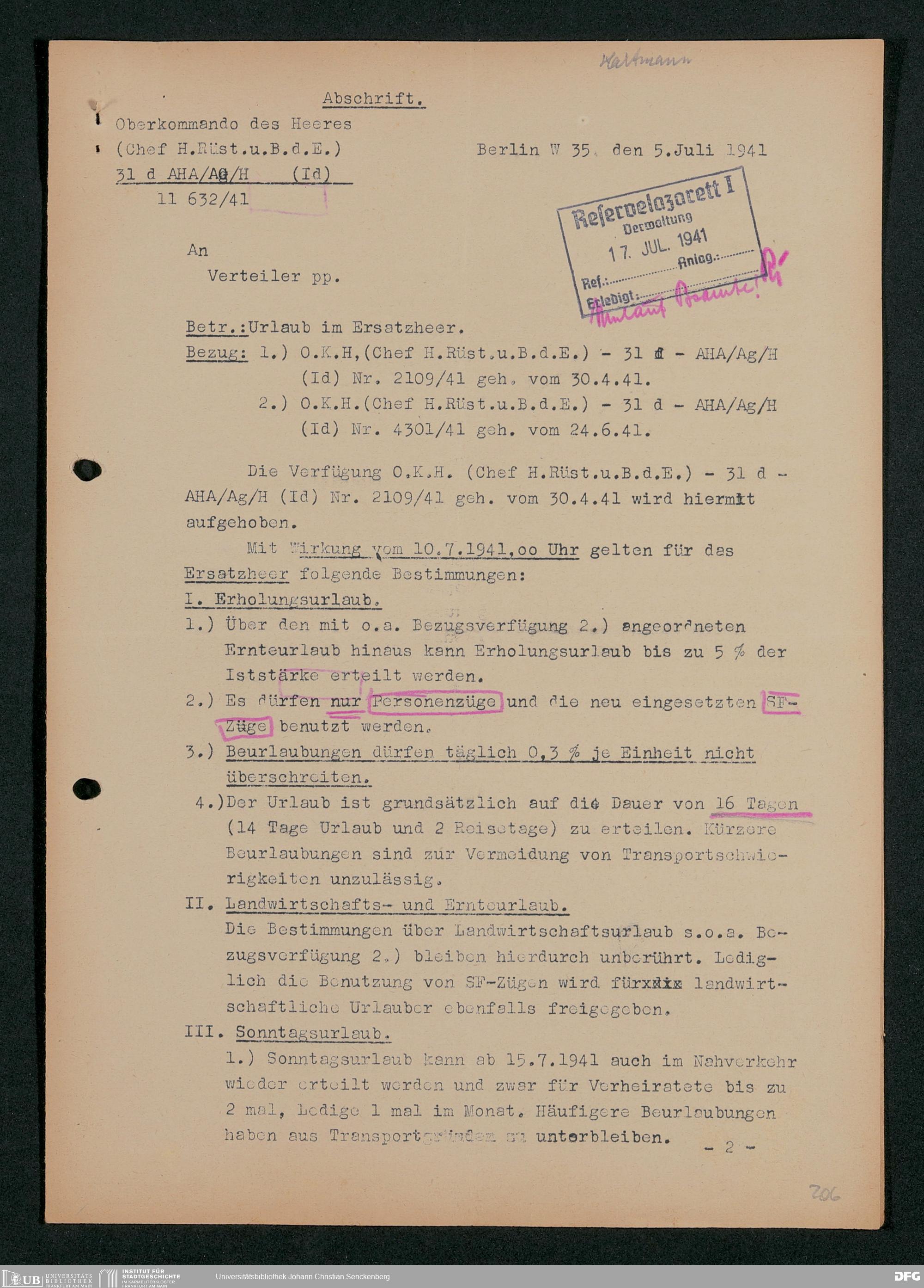 V48 Dr. Senckenbergische Stiftung, 703 - Reservelazarett I
