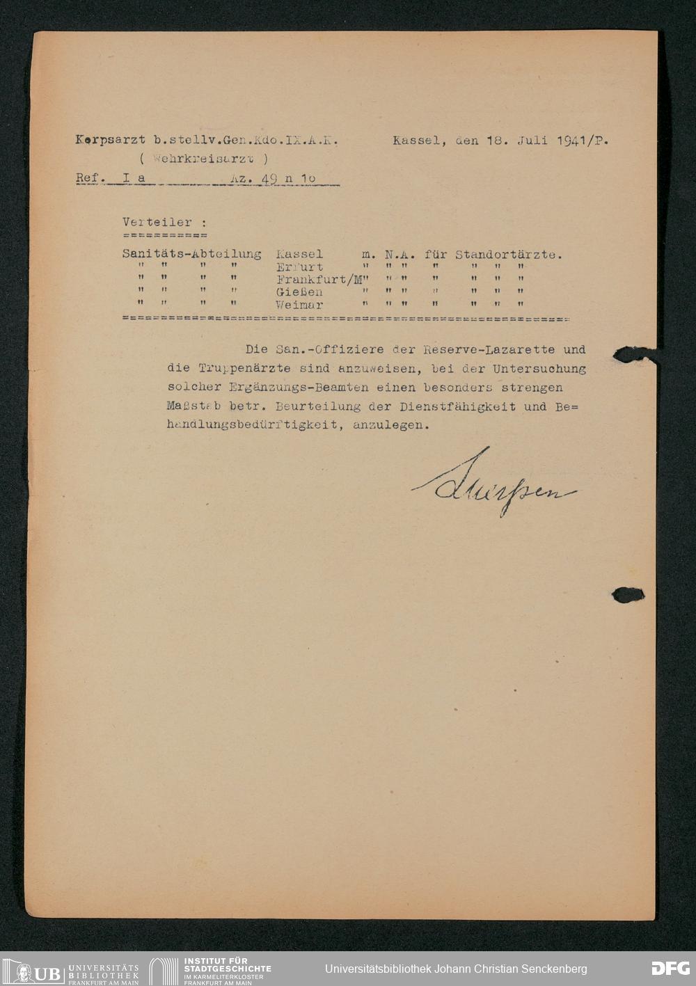 V48 Dr. Senckenbergische Stiftung, 703 - Reservelazarett I