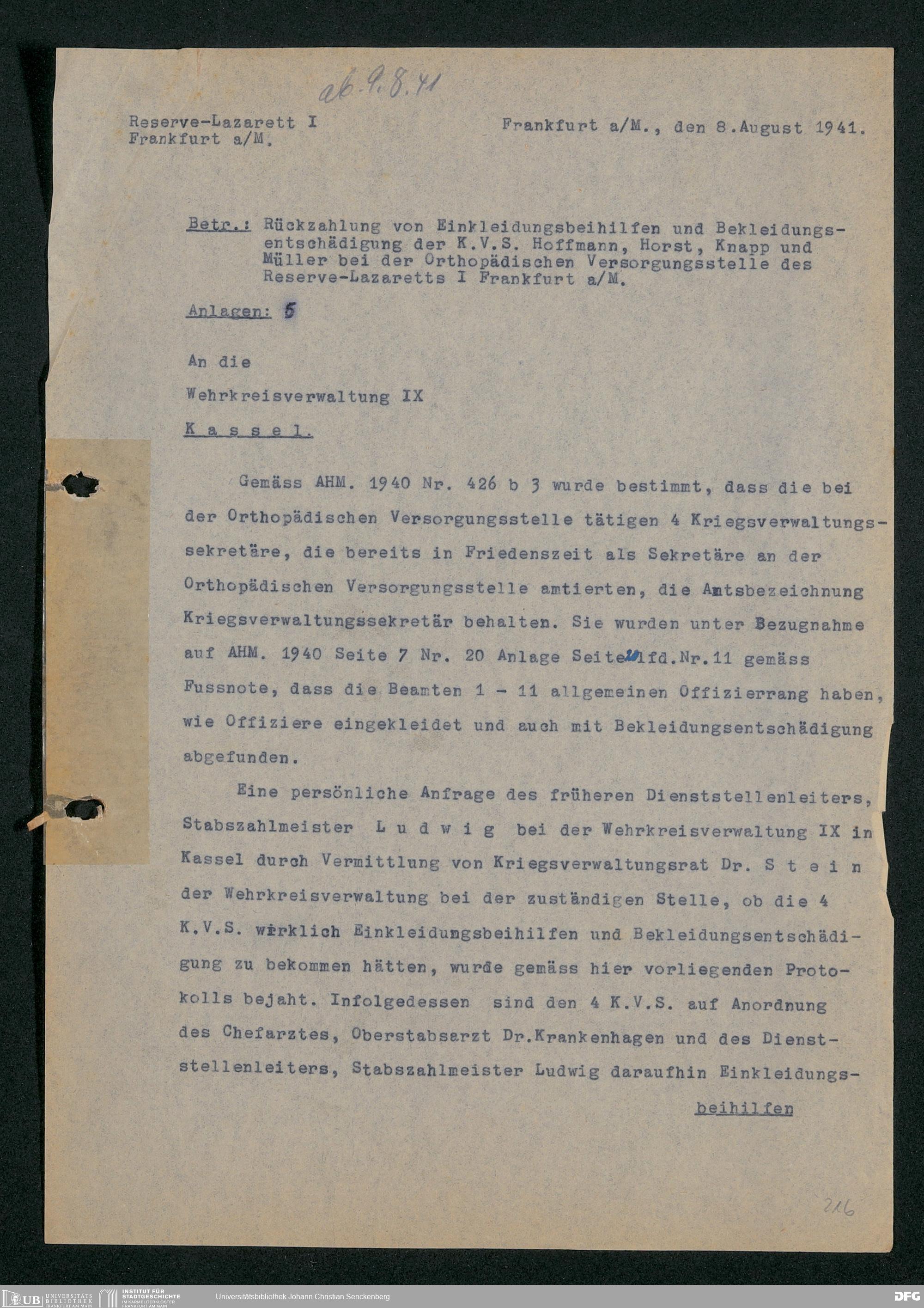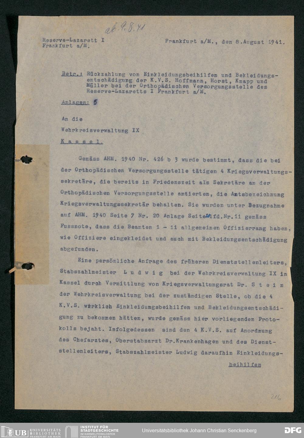 V48 Dr. Senckenbergische Stiftung, 703 - Reservelazarett I