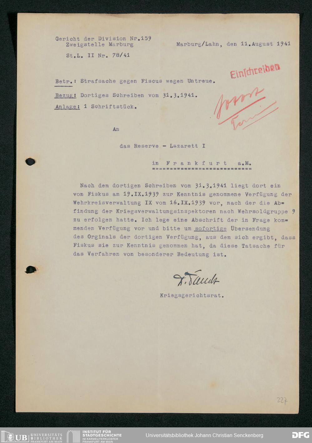 V48 Dr. Senckenbergische Stiftung, 703 - Reservelazarett I