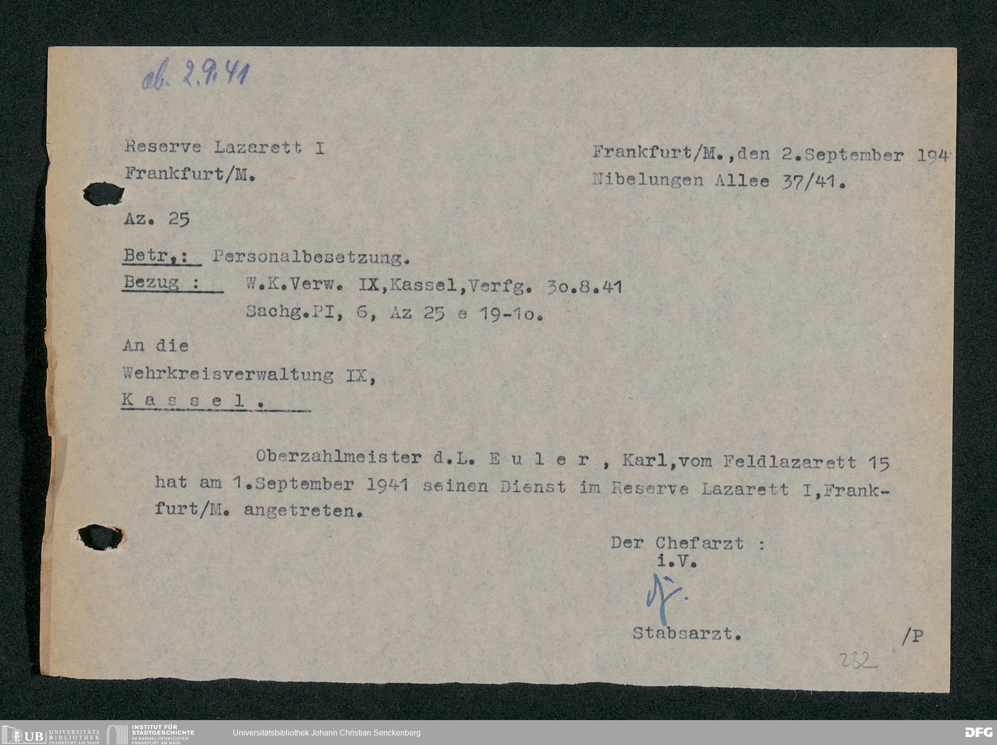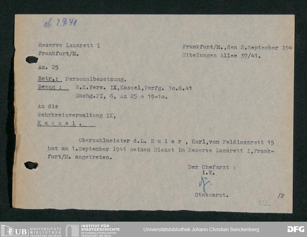 V48 Dr. Senckenbergische Stiftung, 703 - Reservelazarett I