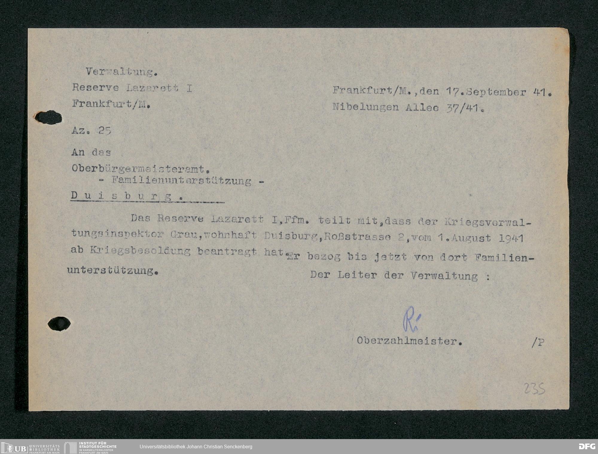 V48 Dr. Senckenbergische Stiftung, 703 - Reservelazarett I