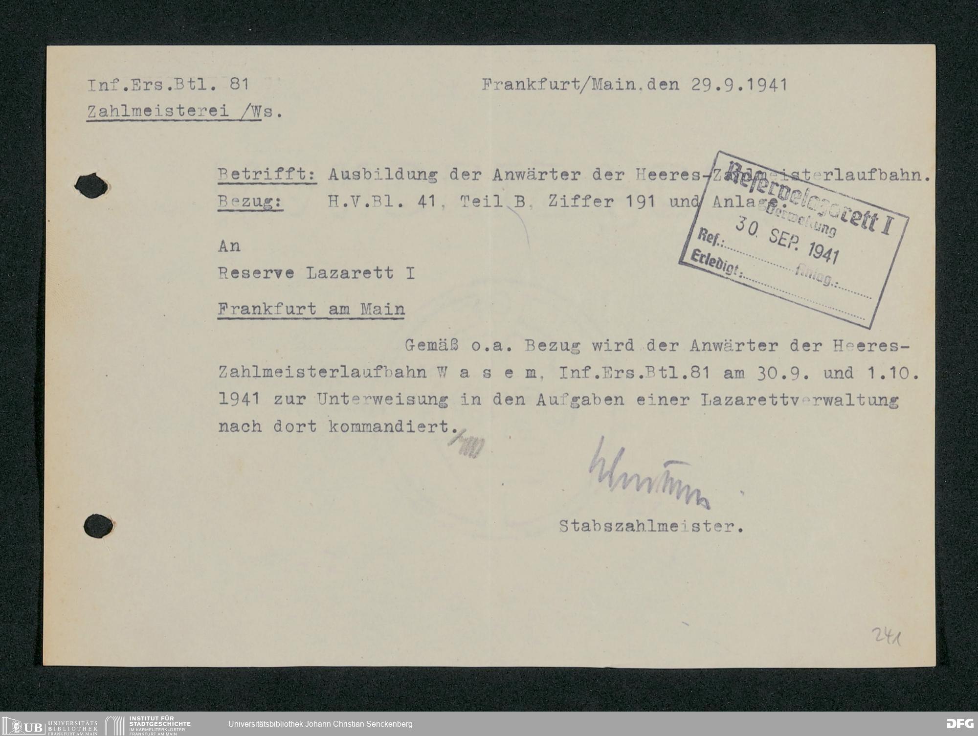 V48 Dr. Senckenbergische Stiftung, 703 - Reservelazarett I