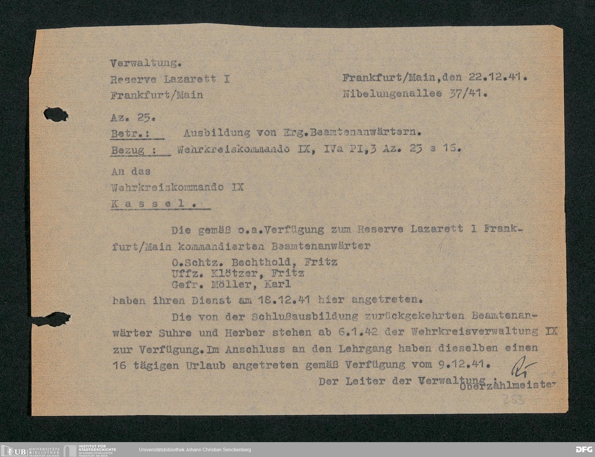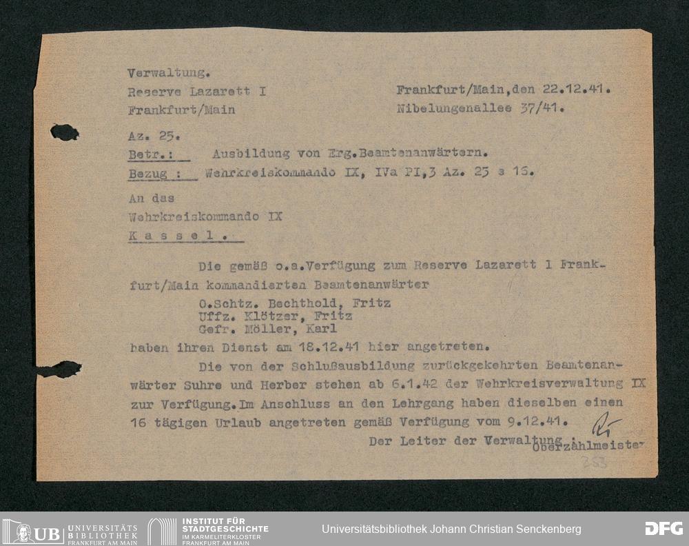 V48 Dr. Senckenbergische Stiftung, 703 - Reservelazarett I