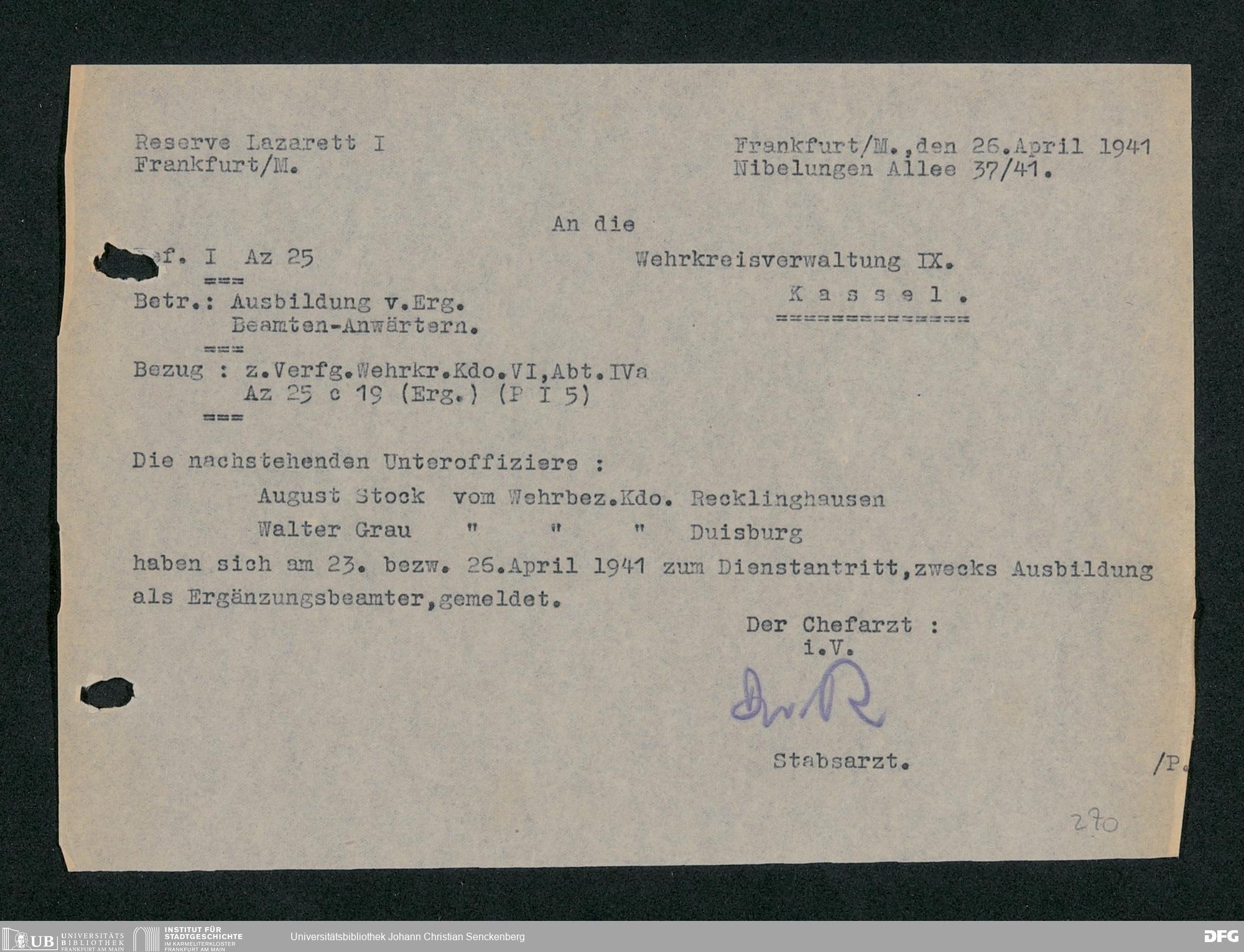 V48 Dr. Senckenbergische Stiftung, 703 - Reservelazarett I