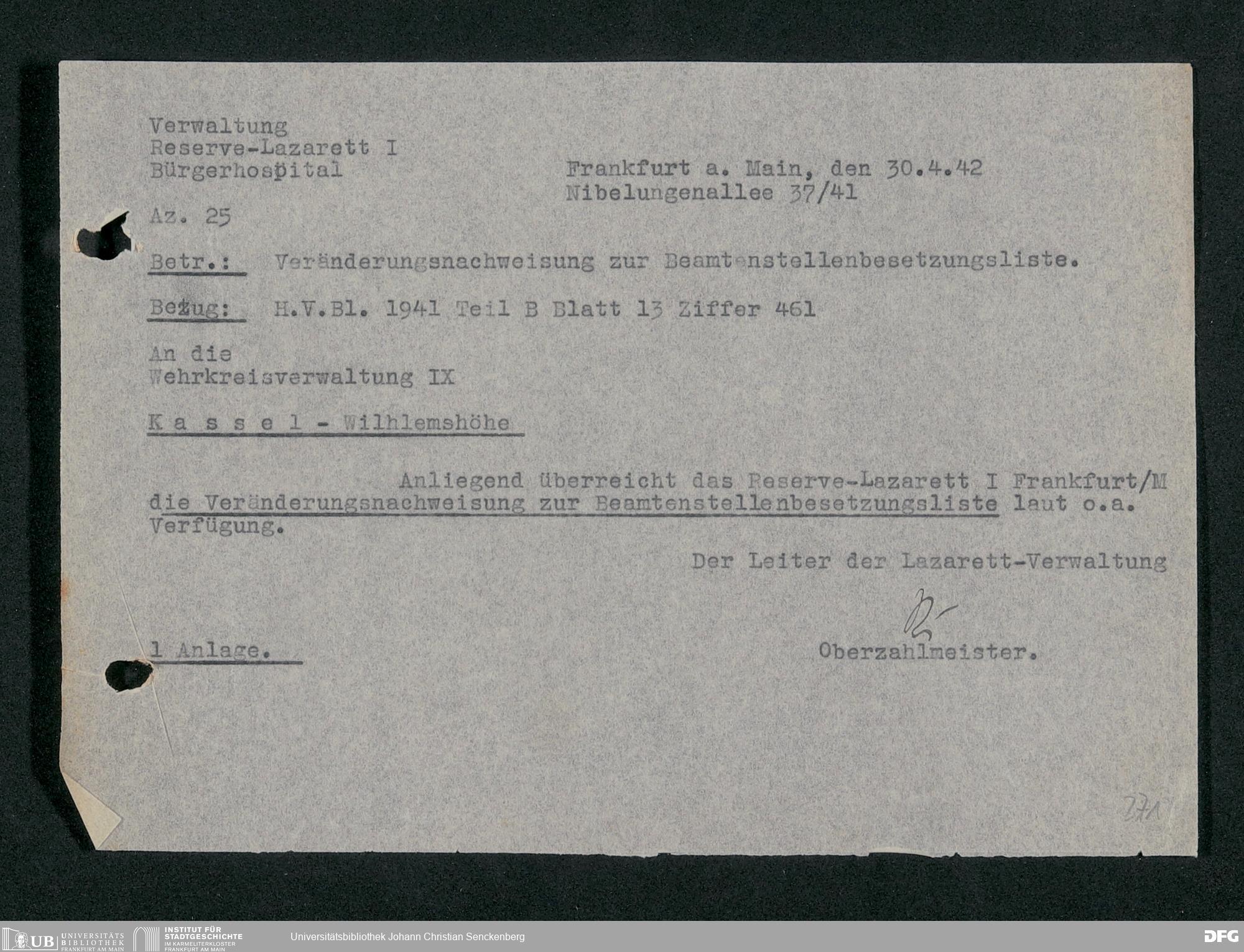 V48 Dr. Senckenbergische Stiftung, 703 - Reservelazarett I