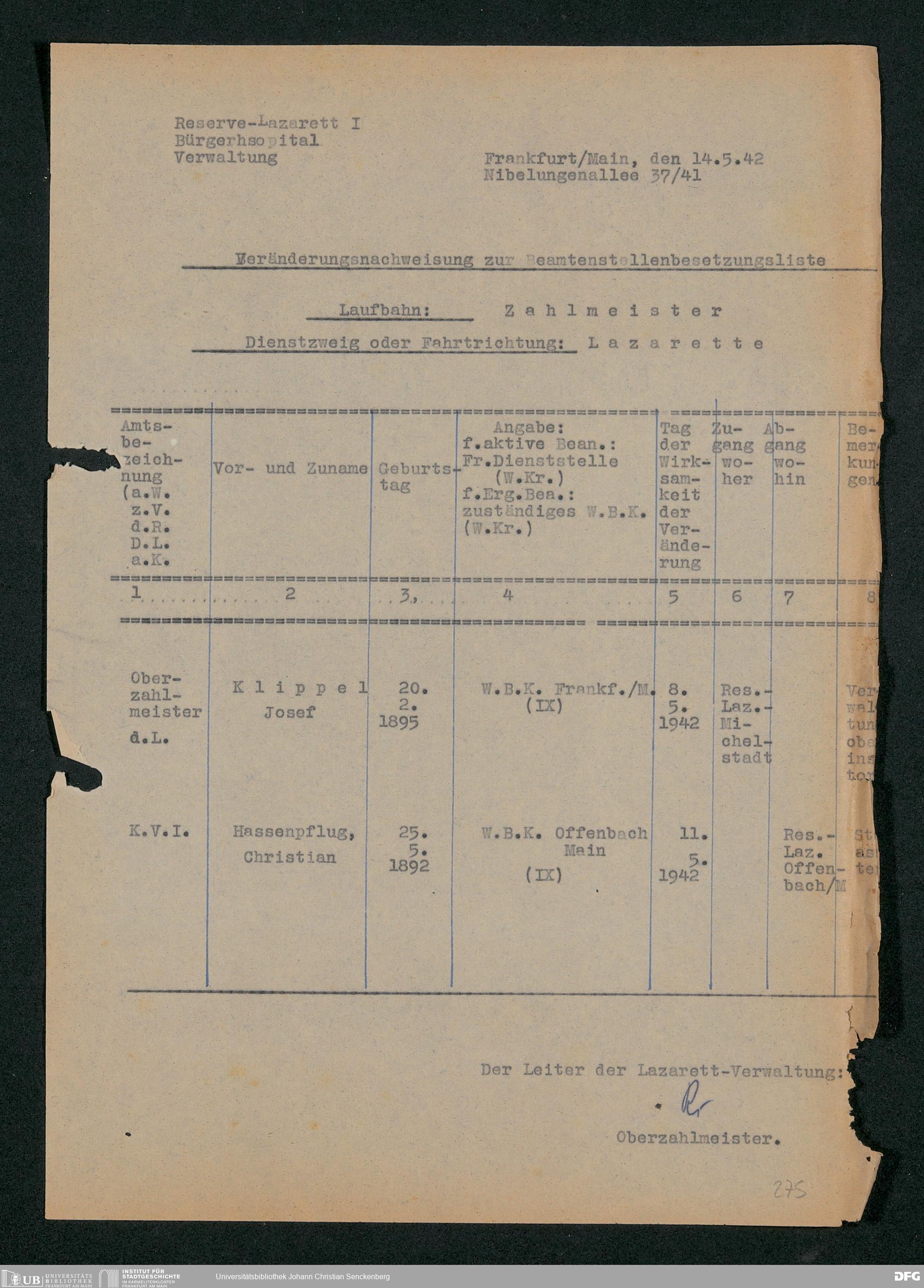 V48 Dr. Senckenbergische Stiftung, 703 - Reservelazarett I