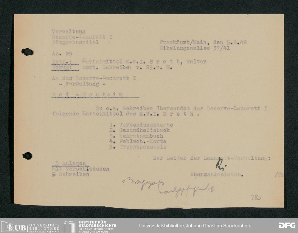 V48 Dr. Senckenbergische Stiftung, 703 - Reservelazarett I