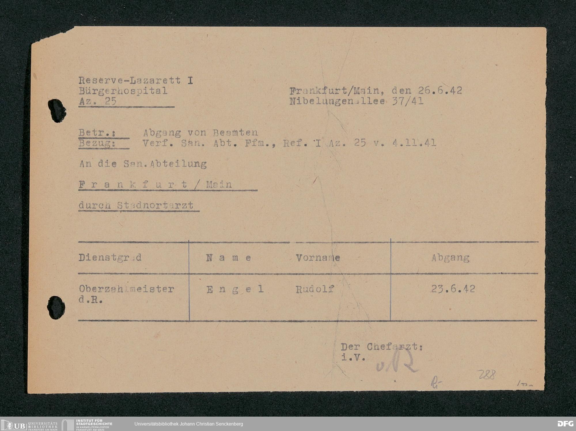 V48 Dr. Senckenbergische Stiftung, 703 - Reservelazarett I