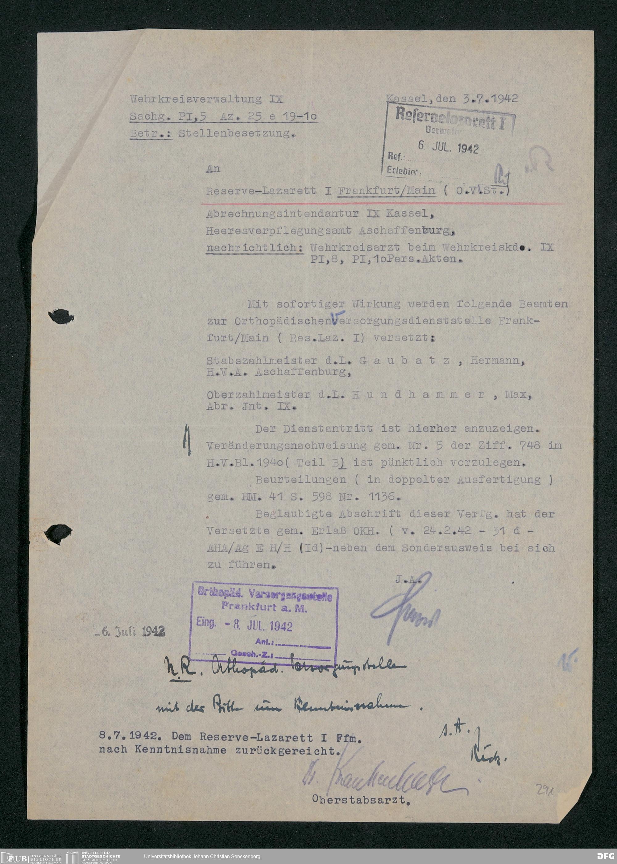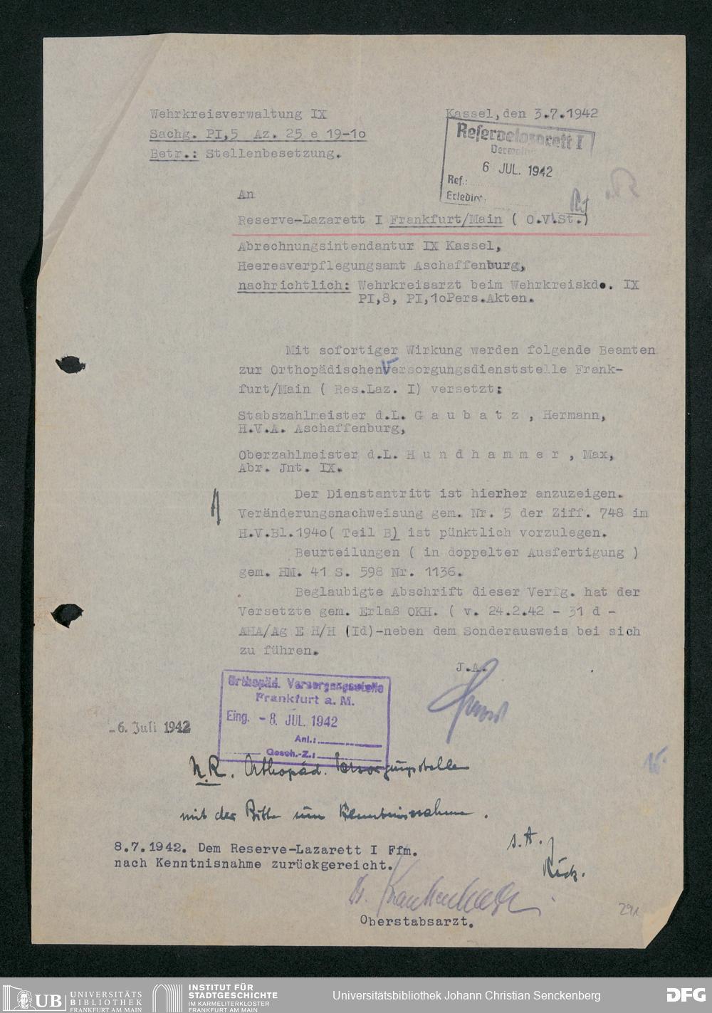 V48 Dr. Senckenbergische Stiftung, 703 - Reservelazarett I