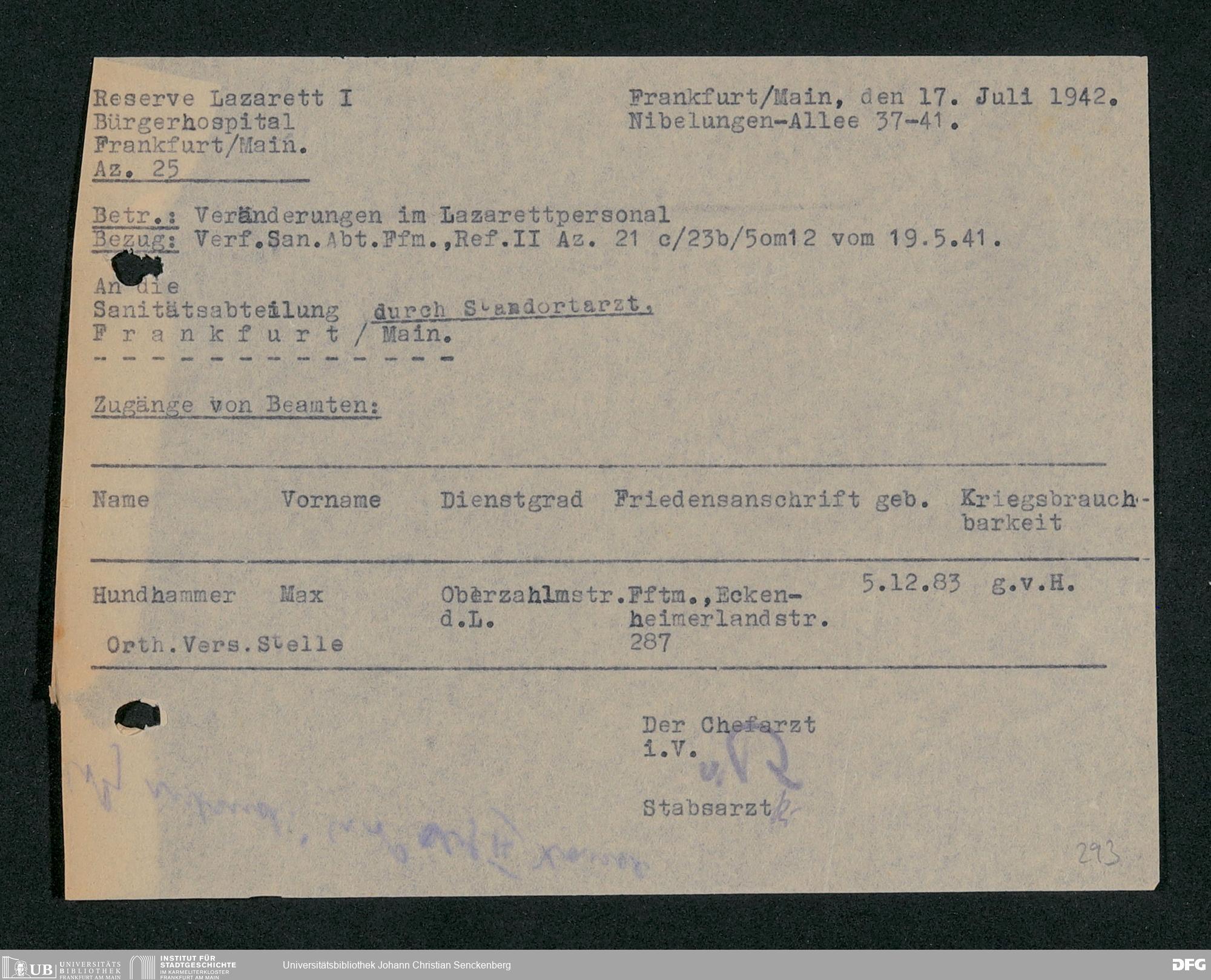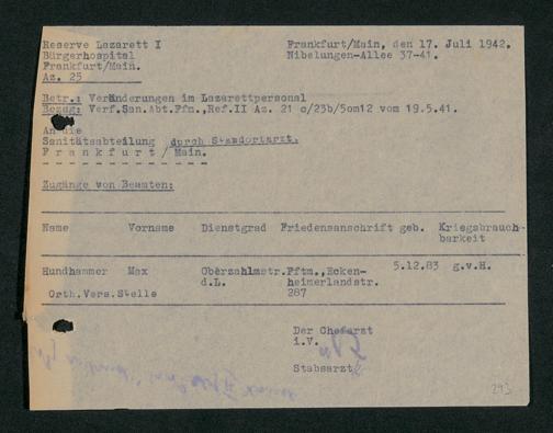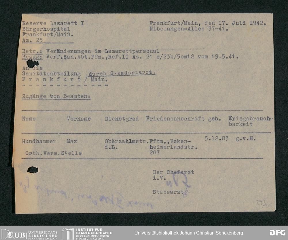 V48 Dr. Senckenbergische Stiftung, 703 - Reservelazarett I