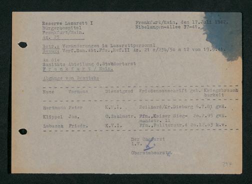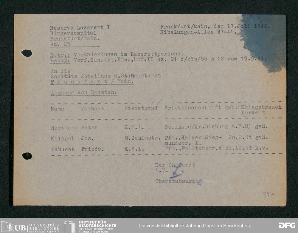V48 Dr. Senckenbergische Stiftung, 703 - Reservelazarett I