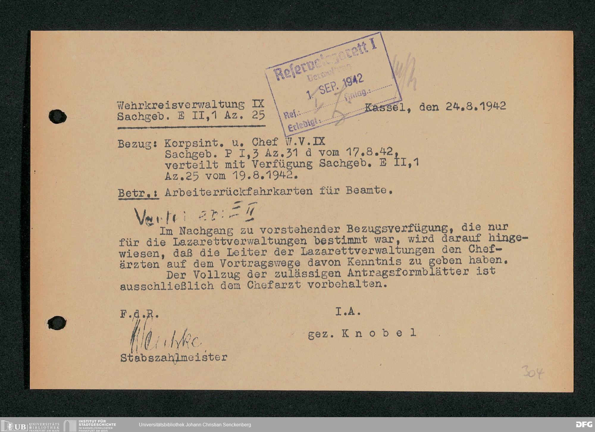 V48 Dr. Senckenbergische Stiftung, 703 - Reservelazarett I