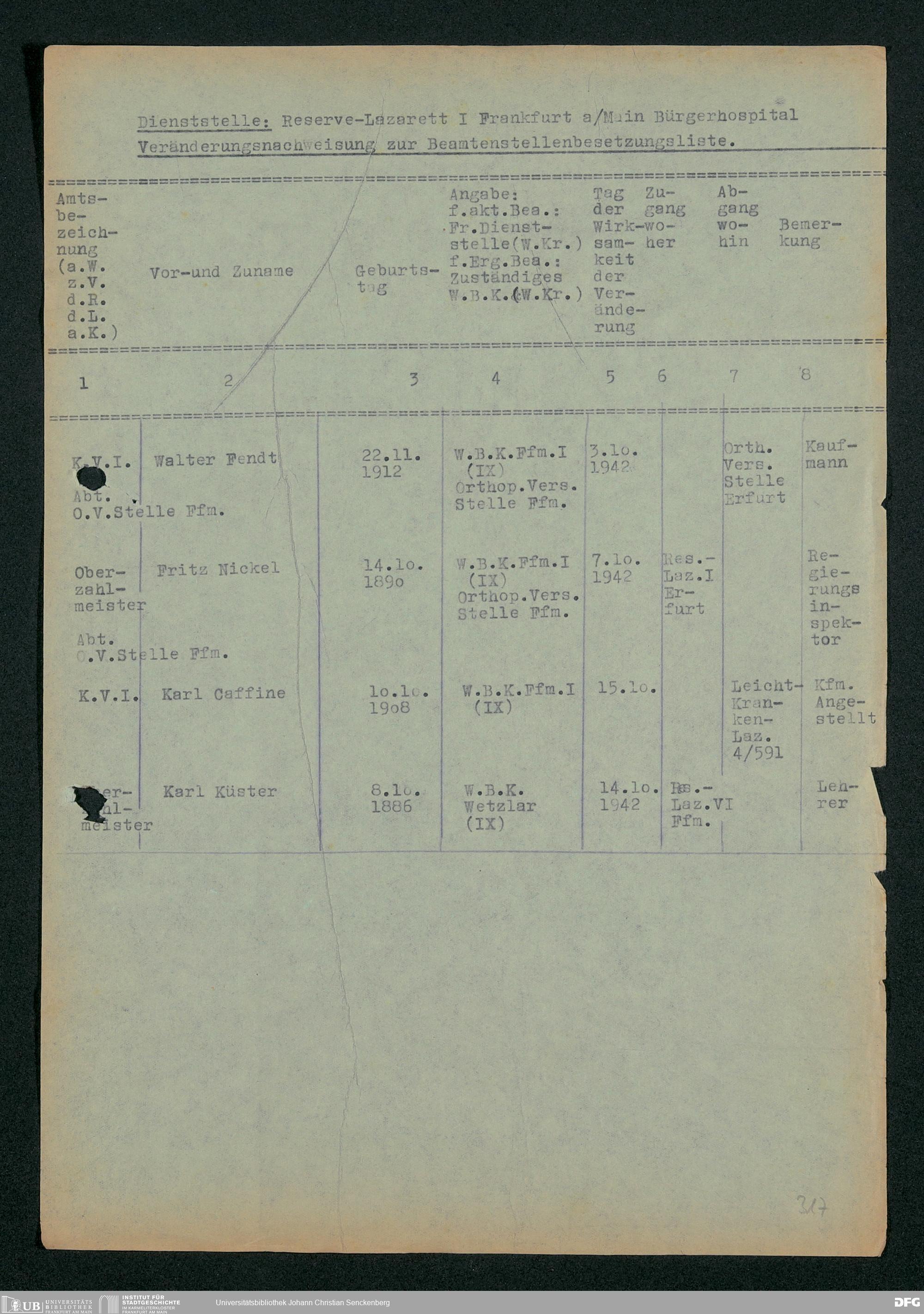 V48 Dr. Senckenbergische Stiftung, 703 - Reservelazarett I
