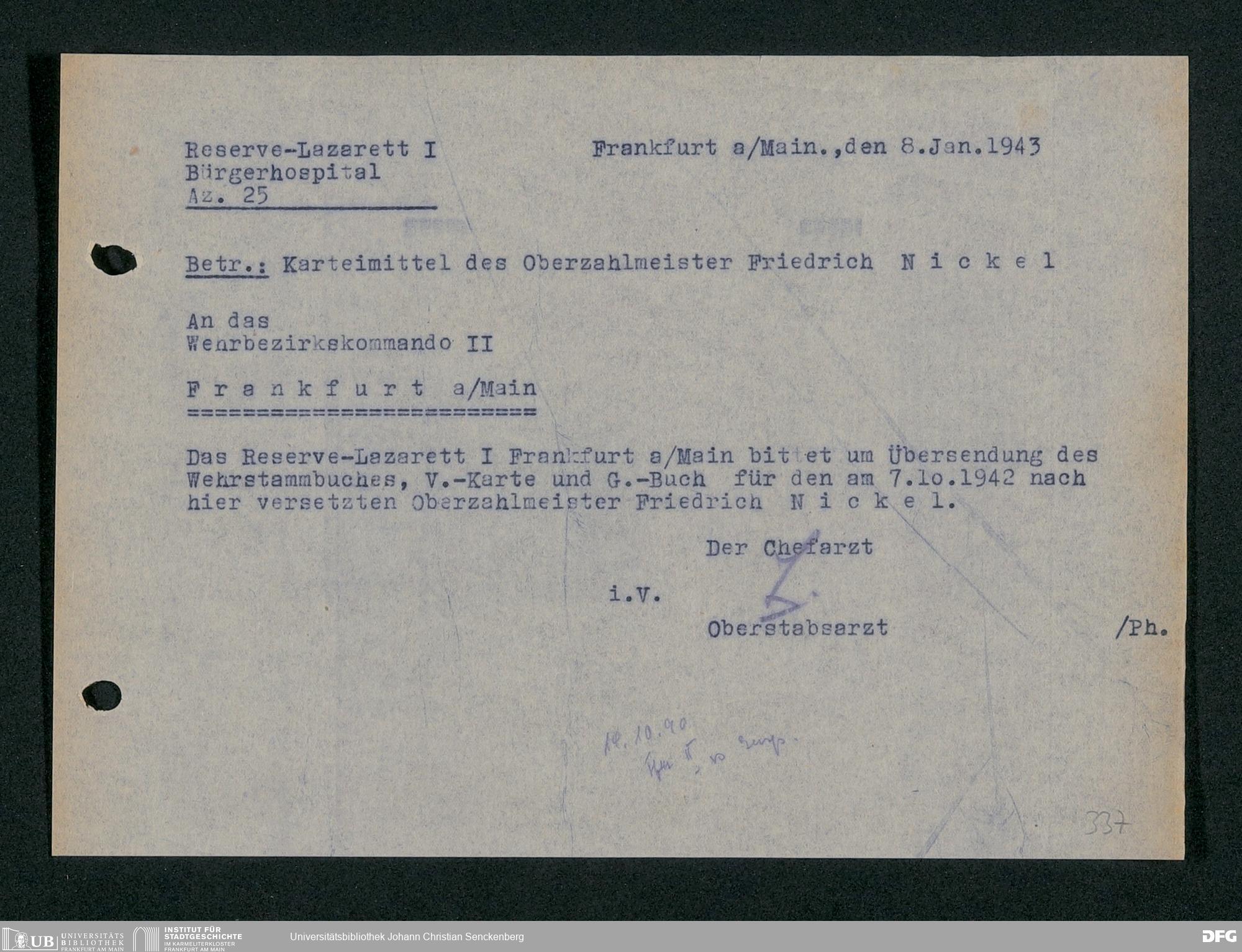 V48 Dr. Senckenbergische Stiftung, 703 - Reservelazarett I