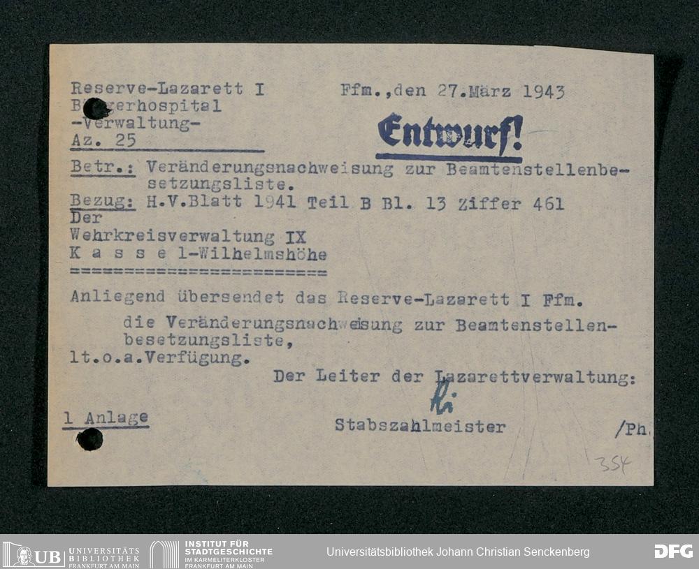 V48 Dr. Senckenbergische Stiftung, 703 - Reservelazarett I