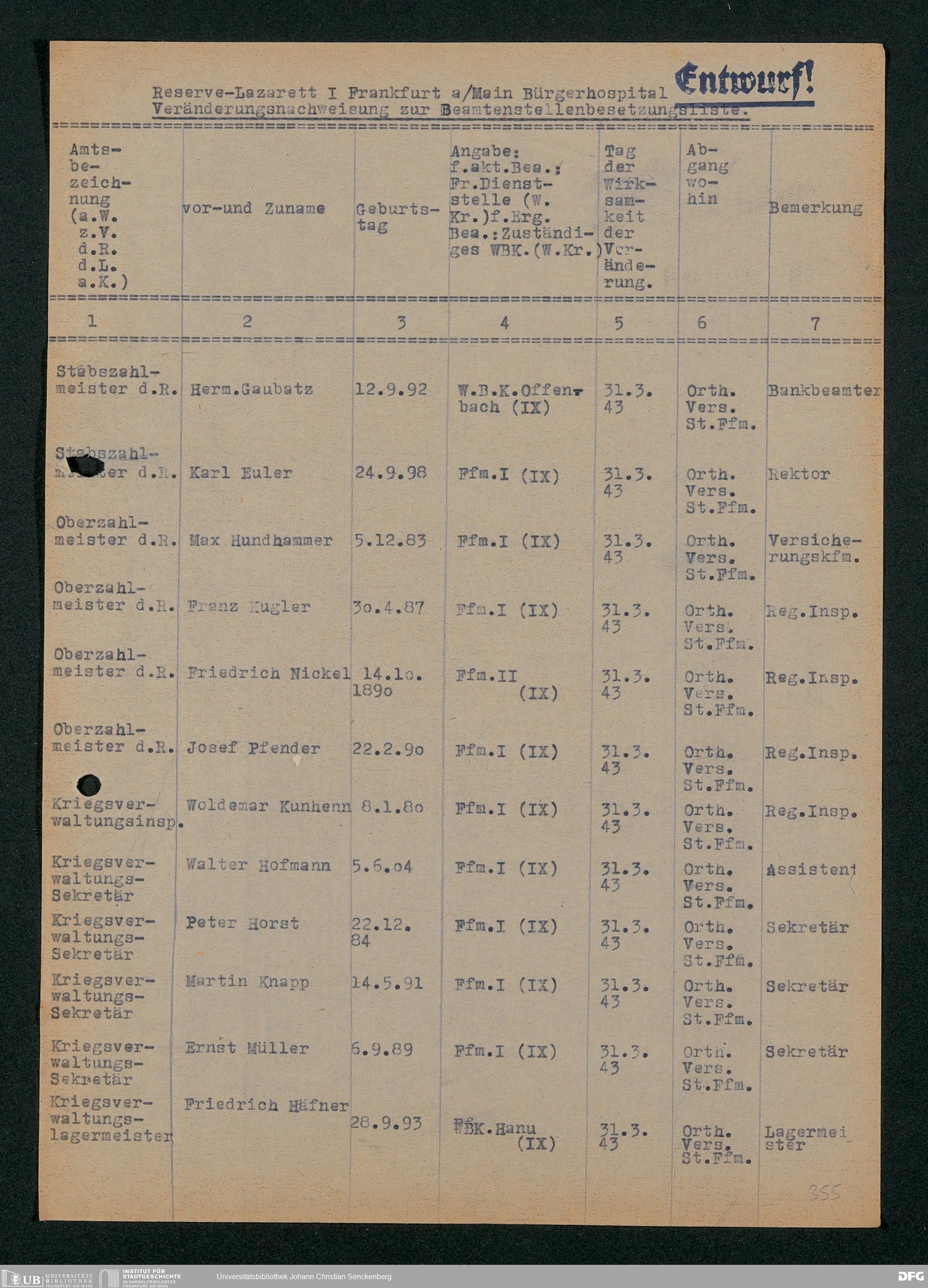 V48 Dr. Senckenbergische Stiftung, 703 - Reservelazarett I