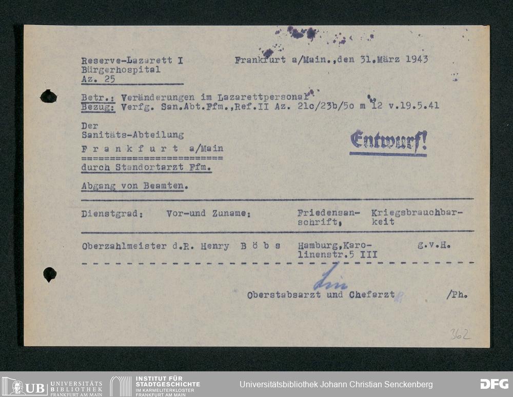 V48 Dr. Senckenbergische Stiftung, 703 - Reservelazarett I