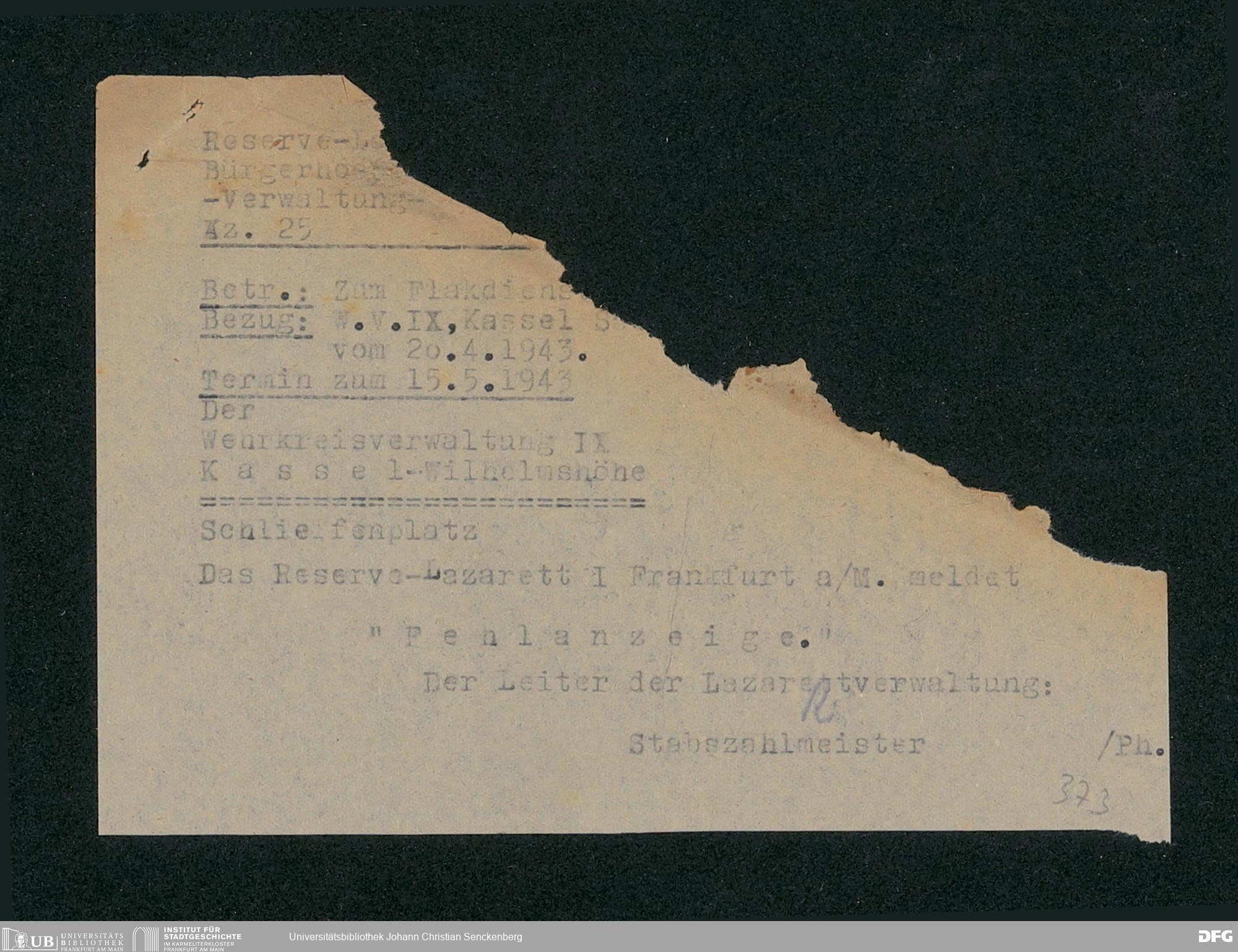 V48 Dr. Senckenbergische Stiftung, 703 - Reservelazarett I