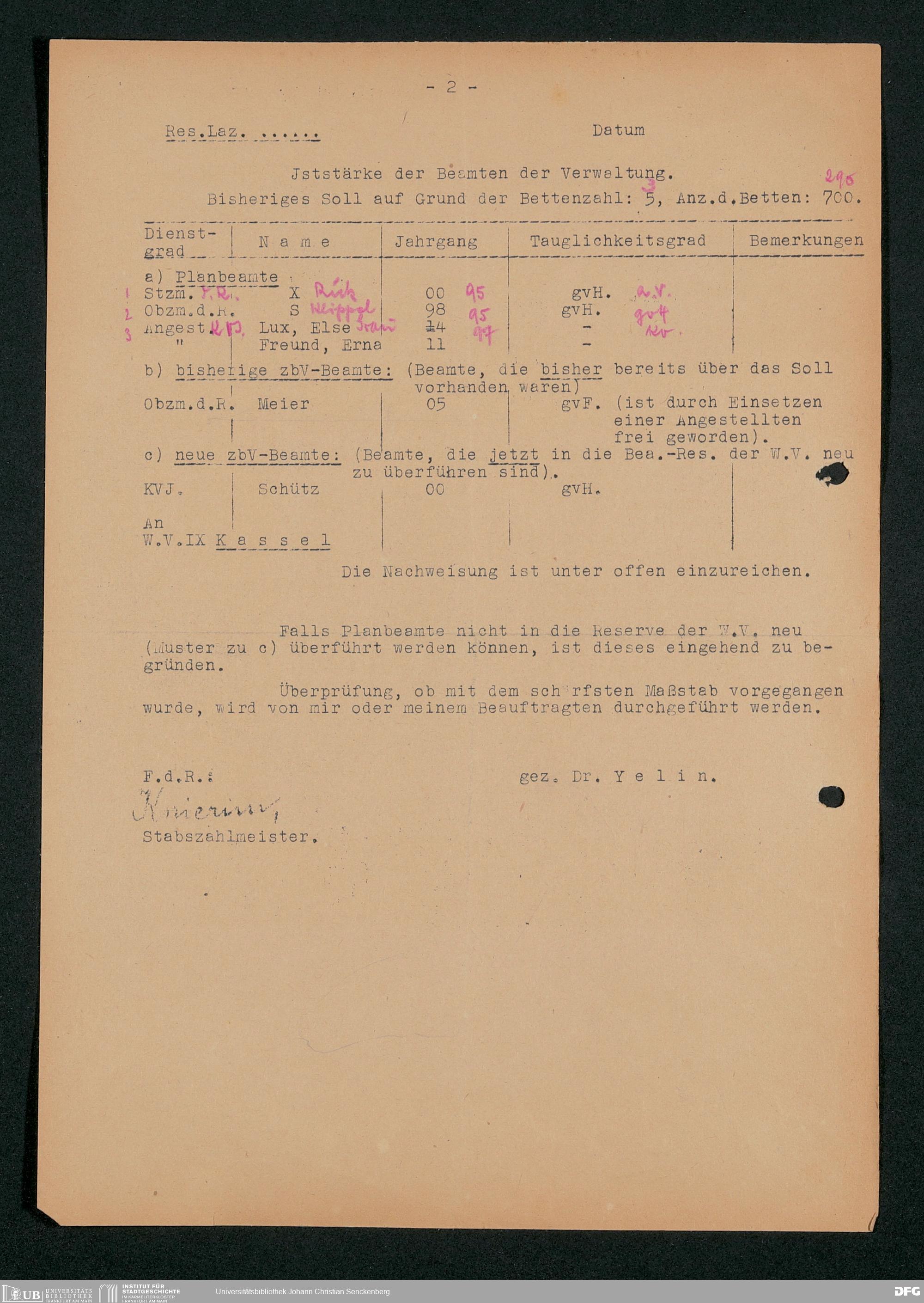 V48 Dr. Senckenbergische Stiftung, 703 - Reservelazarett I