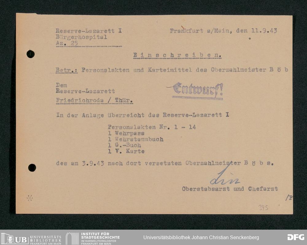 V48 Dr. Senckenbergische Stiftung, 703 - Reservelazarett I