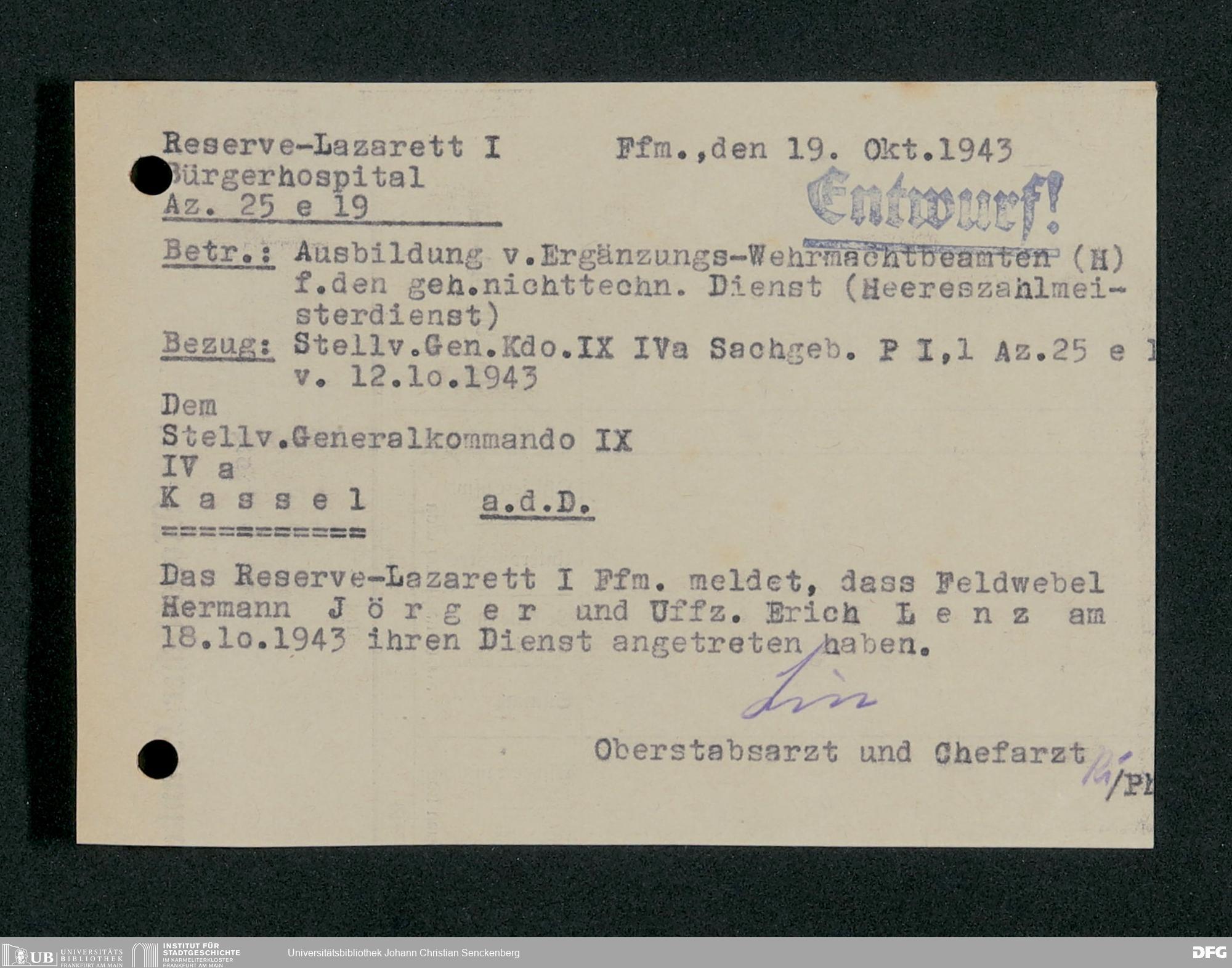 V48 Dr. Senckenbergische Stiftung, 703 - Reservelazarett I