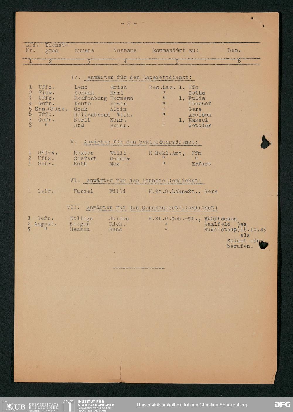 V48 Dr. Senckenbergische Stiftung, 703 - Reservelazarett I