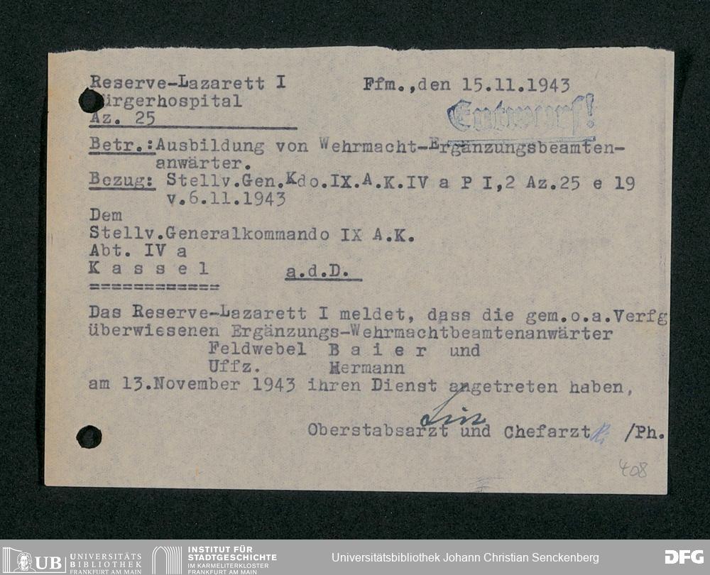 V48 Dr. Senckenbergische Stiftung, 703 - Reservelazarett I
